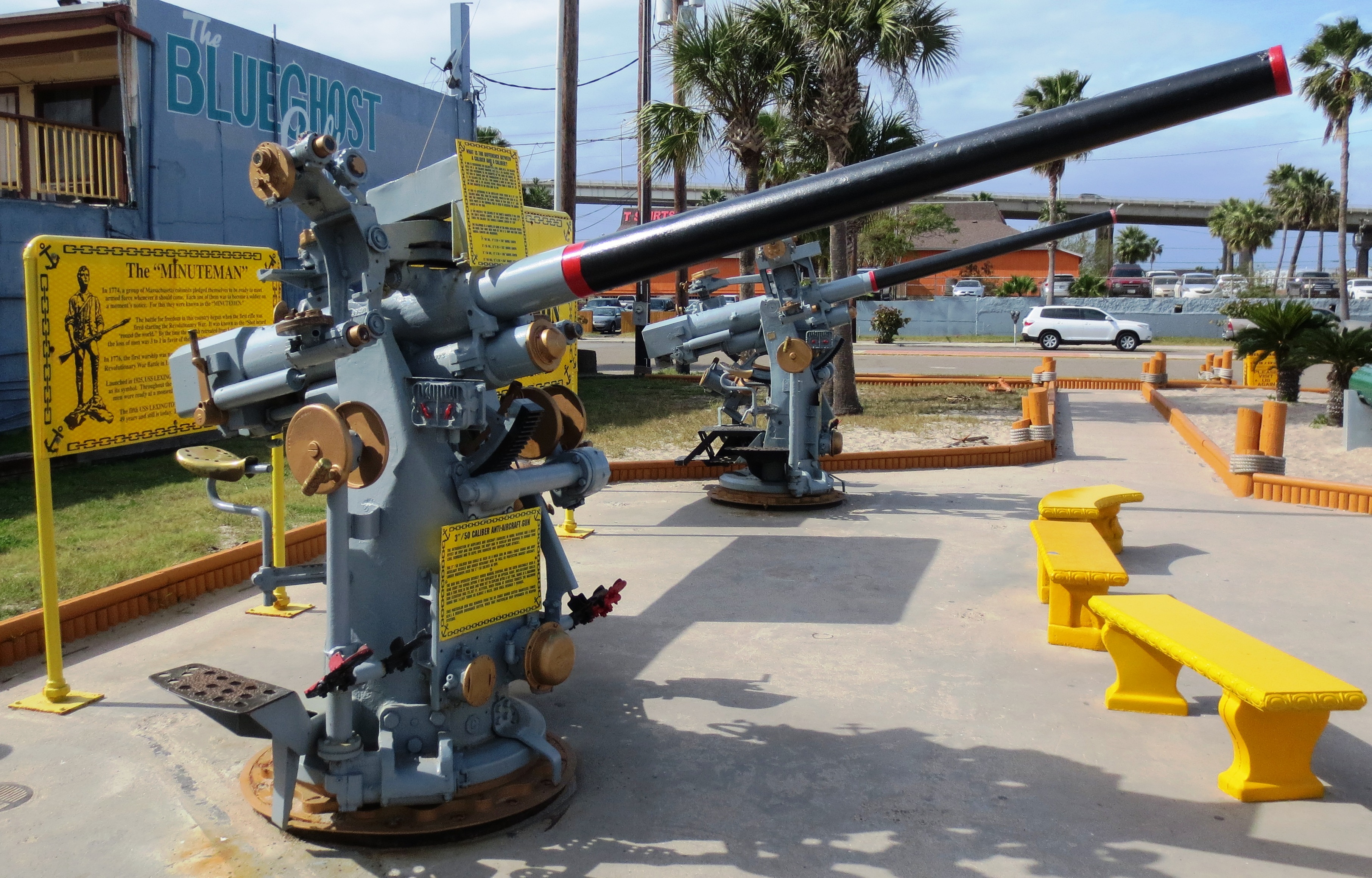 3-inch 50 cal anti-aircraft guns.