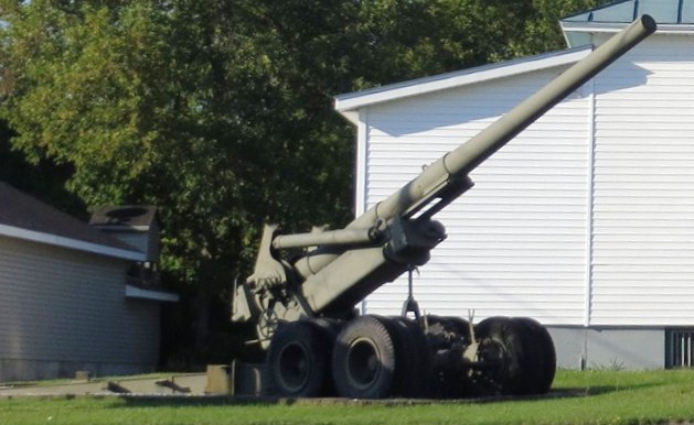 75-mm M1A4 Pack Howitzer, in front of the town war memorial. Similar to this one on display at the 1st Cavalry Museum, Fort Hood, Texas.