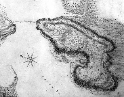 Map of Mount Independence as surveyed by British assistant engineer Lt. Charles Wintersmith in 1777. (University of Vermont Photo)