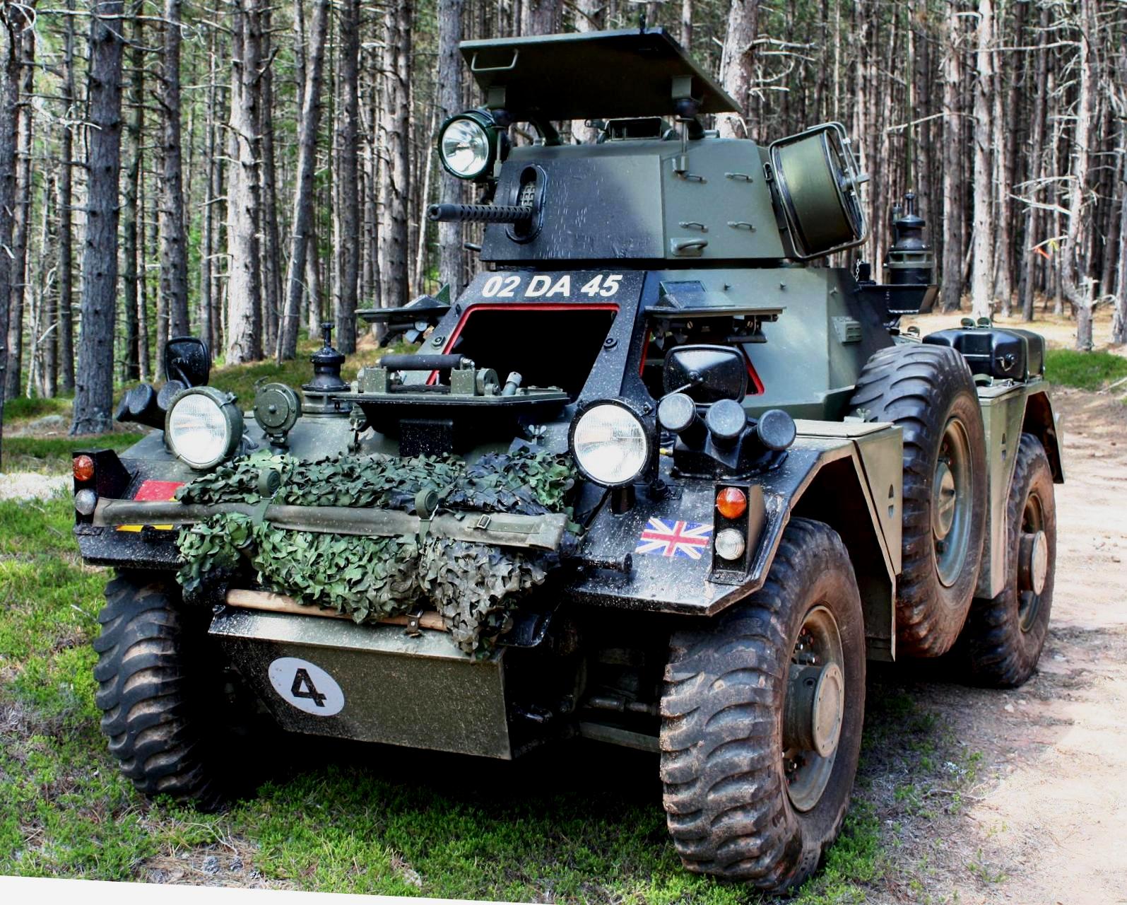 Belgian FN 4RM-62F armoured car, GI Joe, 847 E Washington St. Only 62 were built in 1971-72, all served with the Belgian Gendarmerie.  This AFV’s hull is made of all-welded steel.  The three man crew included a driver sitting in the center-front of the vehicle, having a single piece hatch (opening upwards) and three periscopes.  He can also see through a bullet-proof window at the very front of the hatch, which had an armored cover in case the vehicle came under fire.