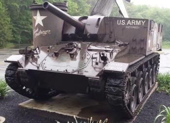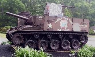 M37 Gun Motor Carriage (GMC) Self-Propelled Gun (SPG). This vehicle is located at the VFW in Georgetown, along Highway 133.  The M37 mated the gun of the M4 Sherman 105 series with the chassis of the M24 Chaffee light tank.
