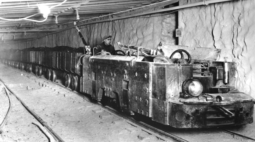 13-ton, 240 H.P. Trolley Locomotive used for hauling coal on main levels, No. 1B Colliery, Dominion Coal Co., Glace Bay, Nova Scotia.