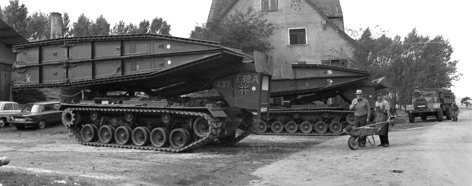 Centurion armoured vehicle-launched bridge (AVLB), Ex Regensprung, Lahr, Germany, 9 Sep 1975.