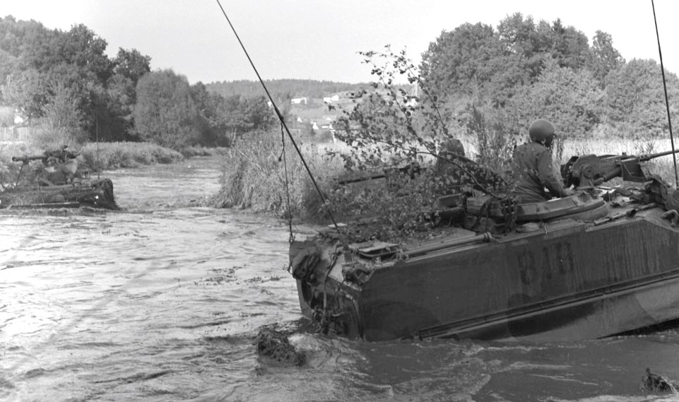 Ex Gutes Omen, southern Germany, M113 C & R Lynx climbing a bank of the Danube river, 25 September 1971.