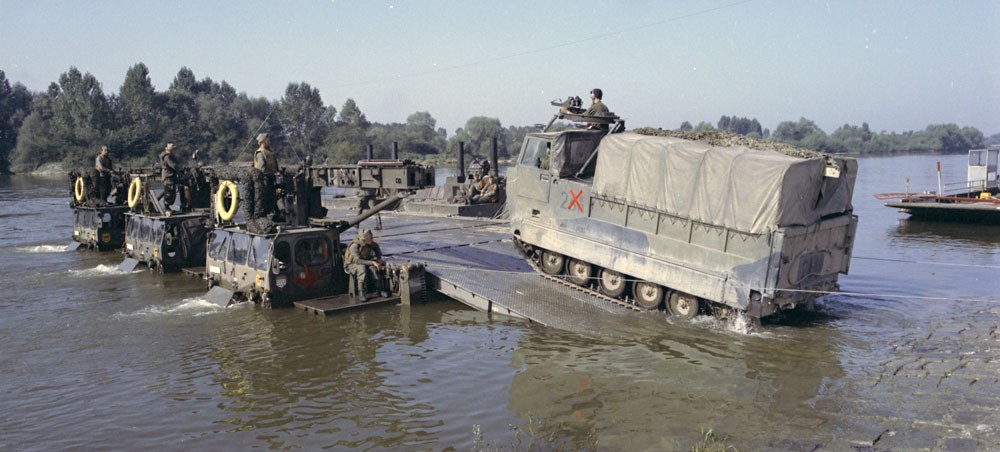 4 CMBG, Ex Grosse Rochade, Germany, ferry over the Danube, 18 Sep 1975.