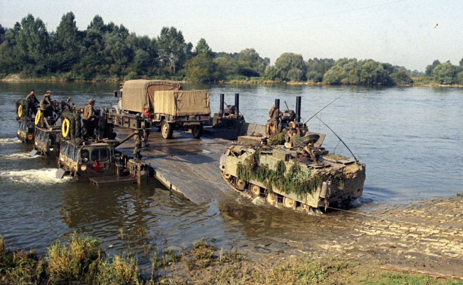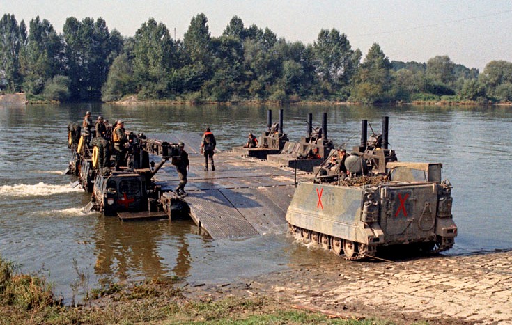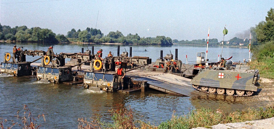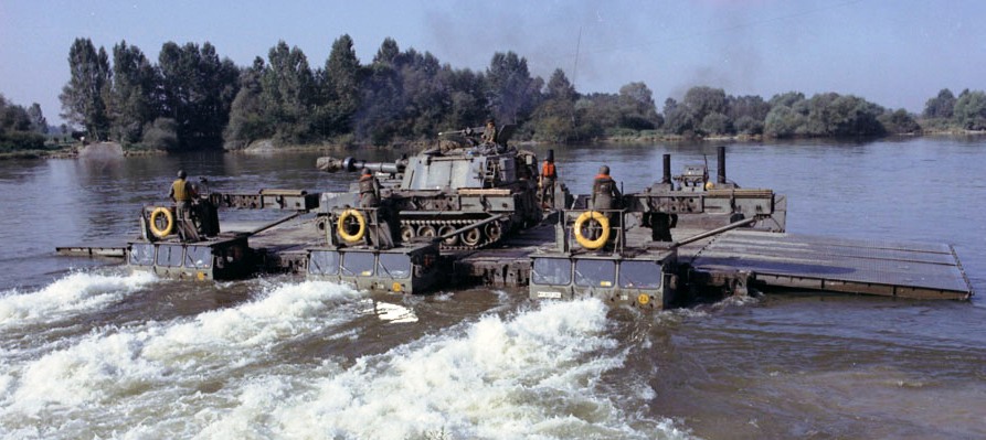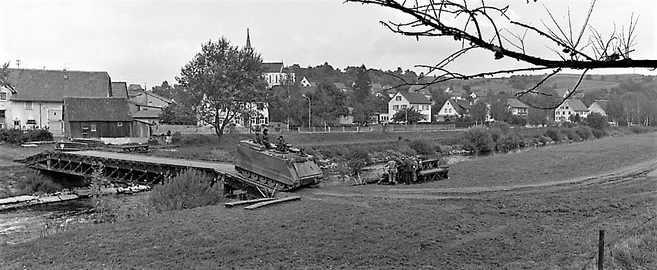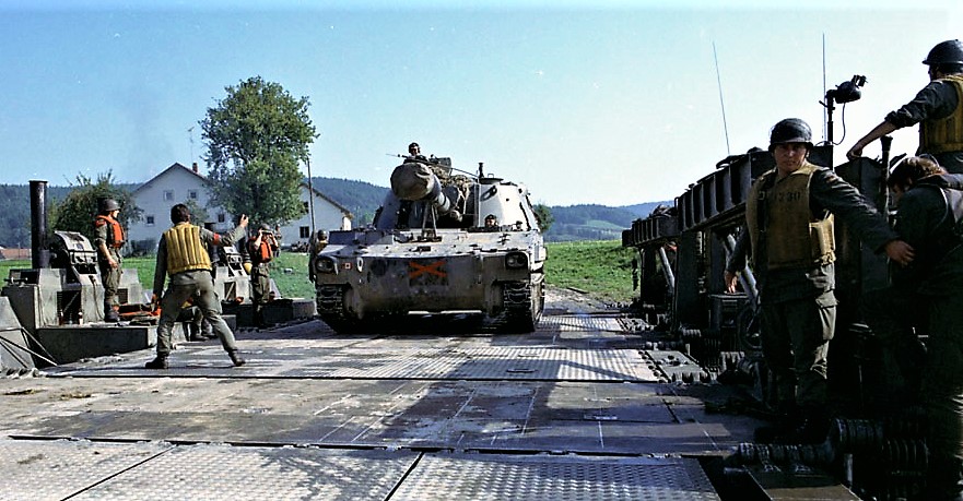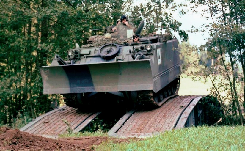 Fallex 76, M113 Dozer on AVLB bridge, 4 CMBG, Germany.