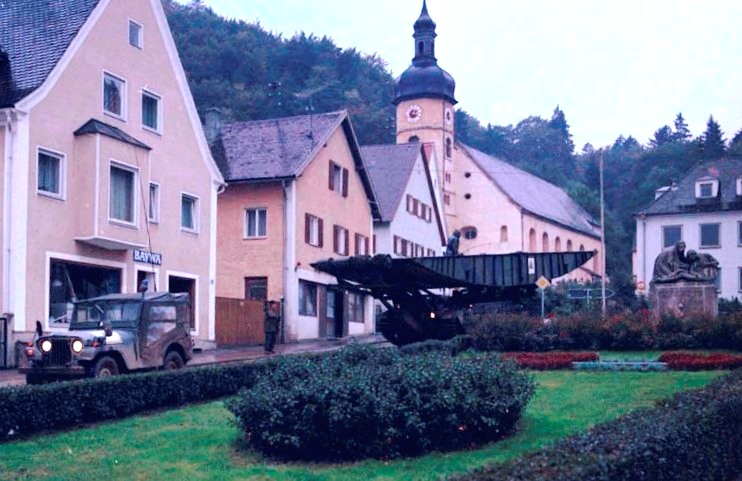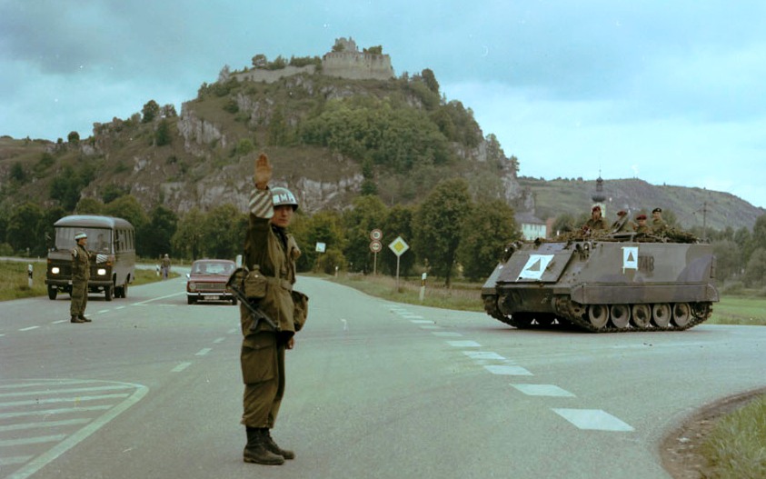 M113, Ex Lares Team, 1976. The ruins of the Kallmünz Castle can be seen above the town on a cliff near the Naab River. The MPs are at the Junction st2165 to Schmidtmühlen and st2235 to Burglengenfeld at Kallmünz, about 12 km southeast of US Army Garrison Hohenfels (information courtesy of Mr. Tamas Nagl)