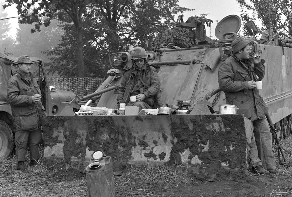 Fallex 76, 4 CMBG solders preparing for the day’s exercises, Lahr, Germany, 1976.