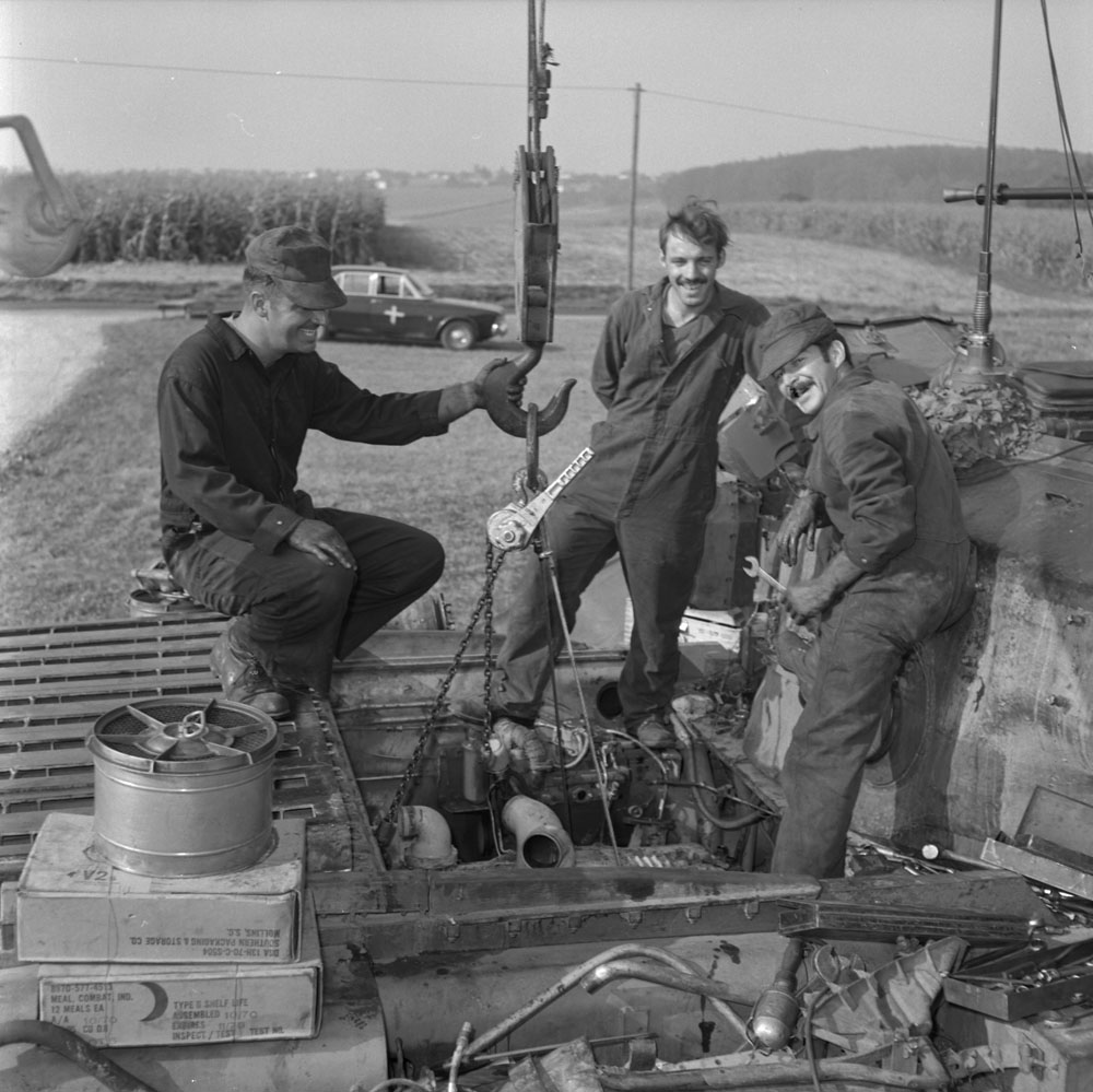 Centurion, Ex Reforger 74, crane lifting engine, Germany, Oct 1974.