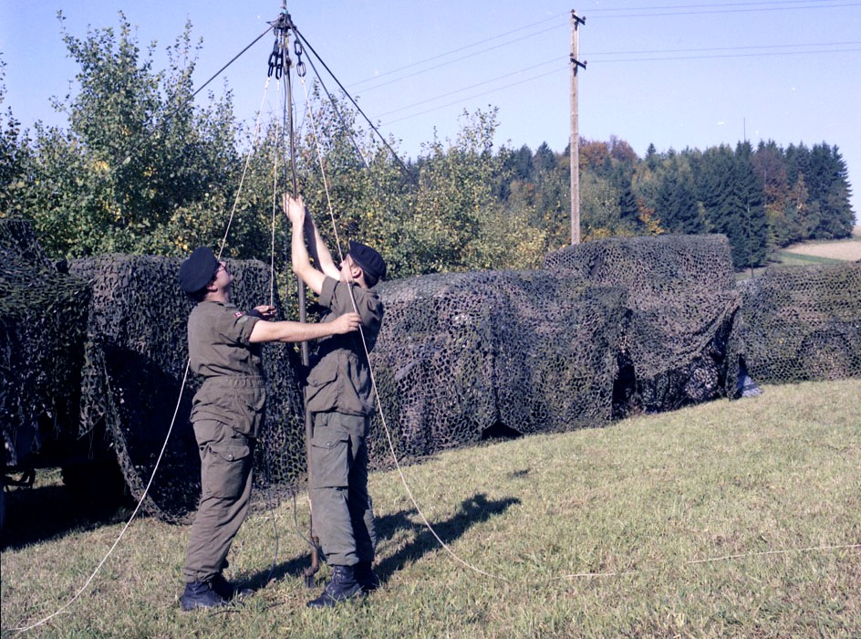 4 CMBG, putting up radio antenna, 19 set mast and guy ropes, Fallex 76, Germany, 1976.