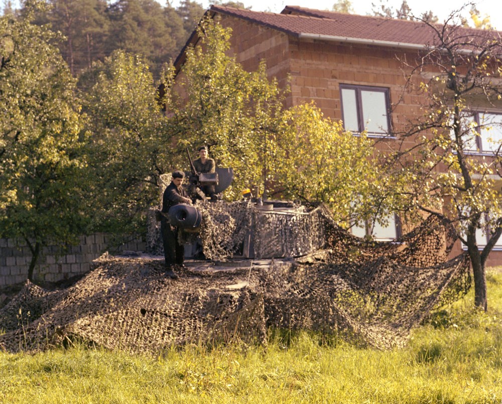 Fallex 76, R22eR soldier on guard duty during the exercise in Bavaria, Germany, September 1976.