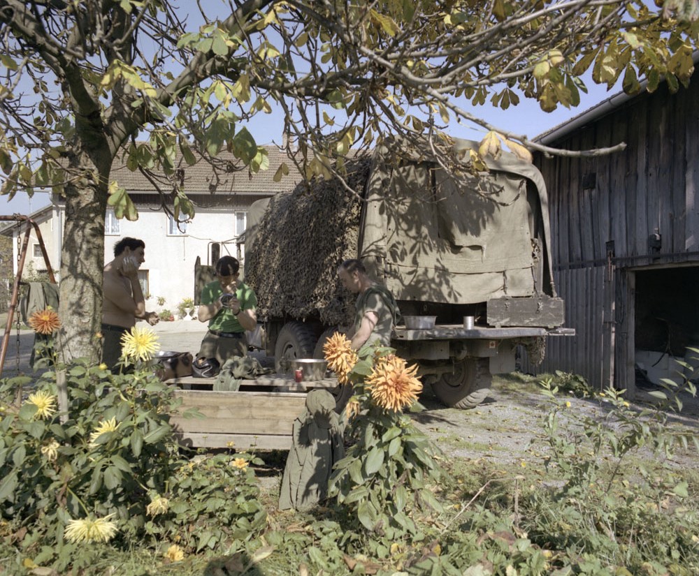 Fallex 76, A 4 CMBG cook truck set up in a farm yard during the exercise in Bavaria, Germany, 1976.
