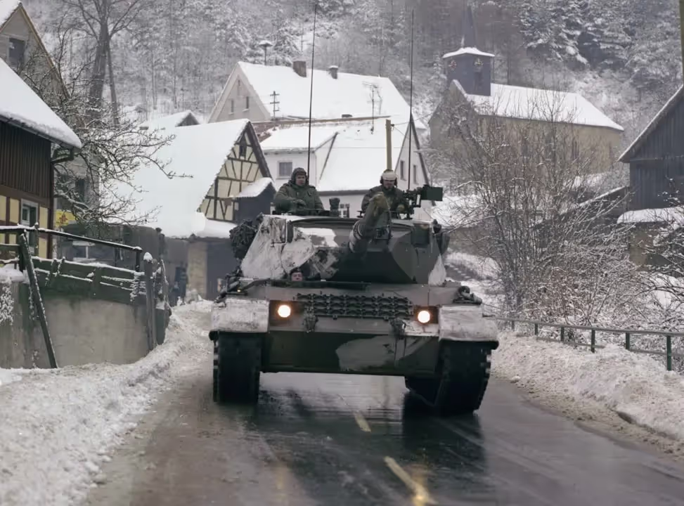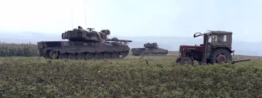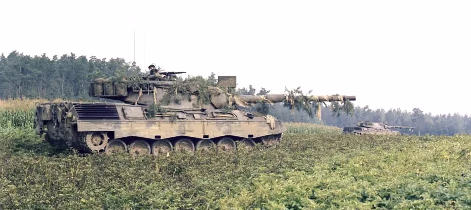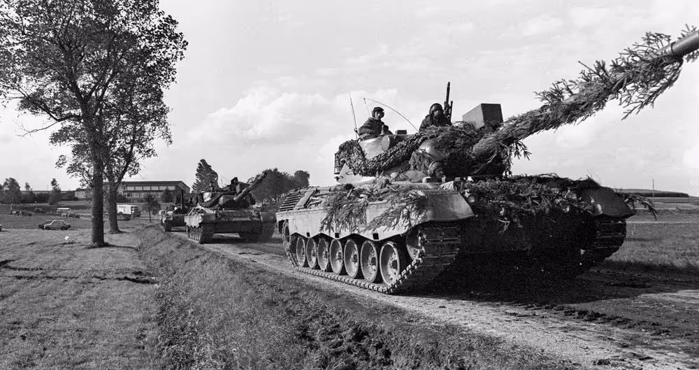 Fall Ex 77.  Camouflaged Leopard tank in Germany.