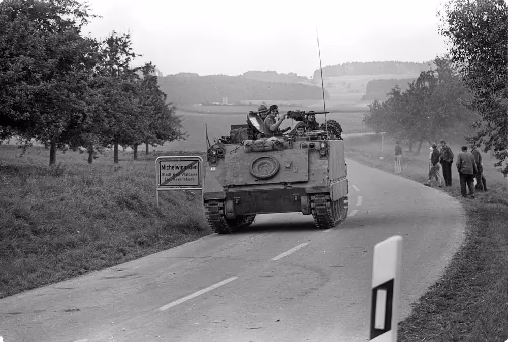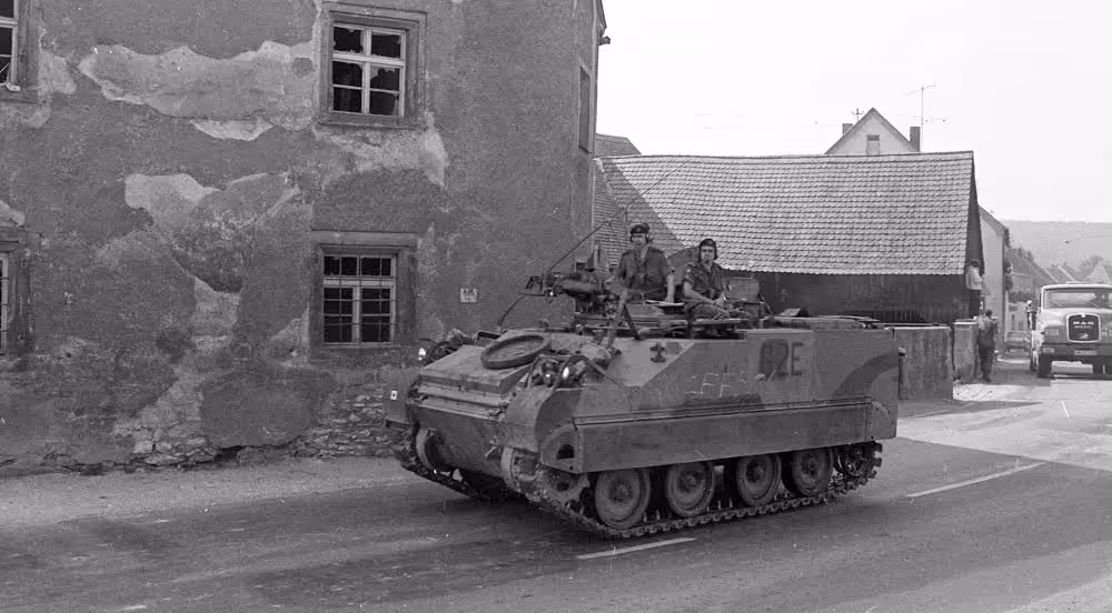 Fallex 77. M113 APC’s moving through the town of Nabburg, Germany, September 1977.
