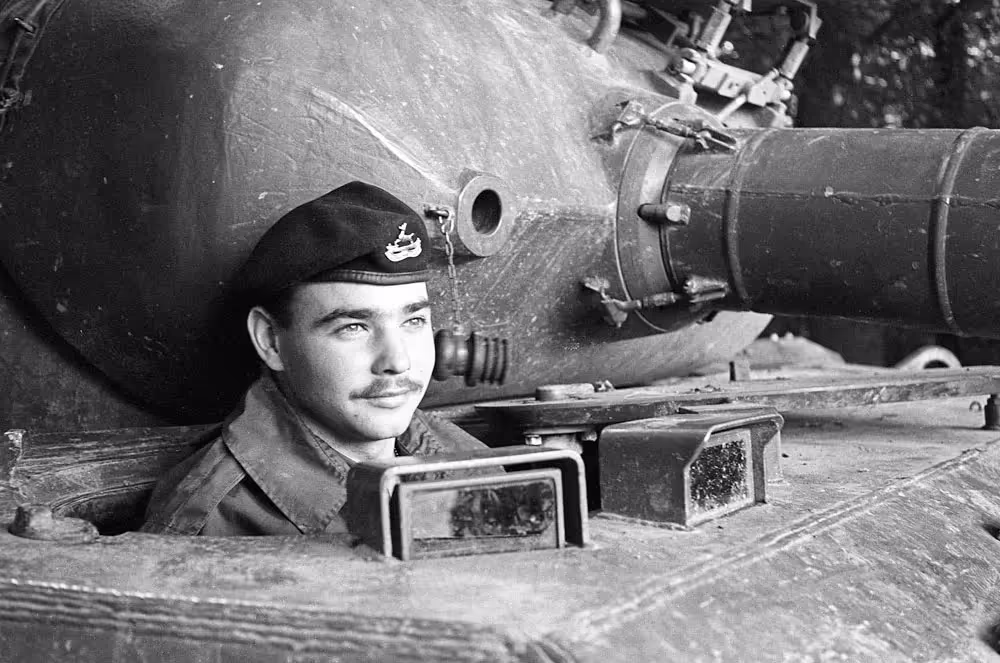 Fallex 78, RCD trooper Bellerose waits for the order to move his 46-ton Leopard main battle tank during Ex Blaue Donau being held north of Danauworth, Germany, September 1978.