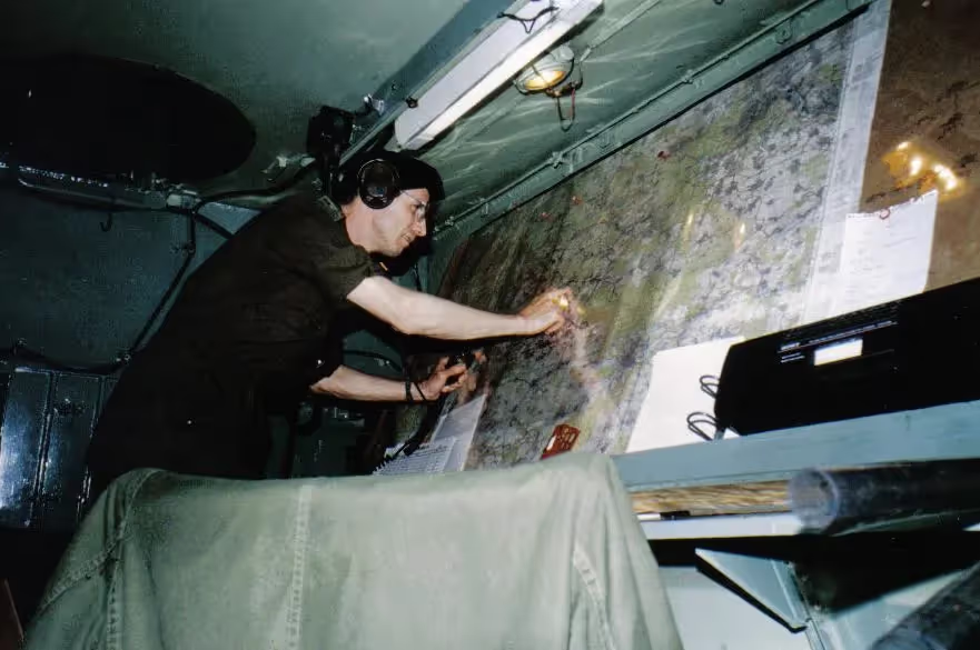 Capt Harold Skaarup in the 4 Canadian Mechanized Brigade Group (4 CMBG), Command Post M577, Fallex 91.