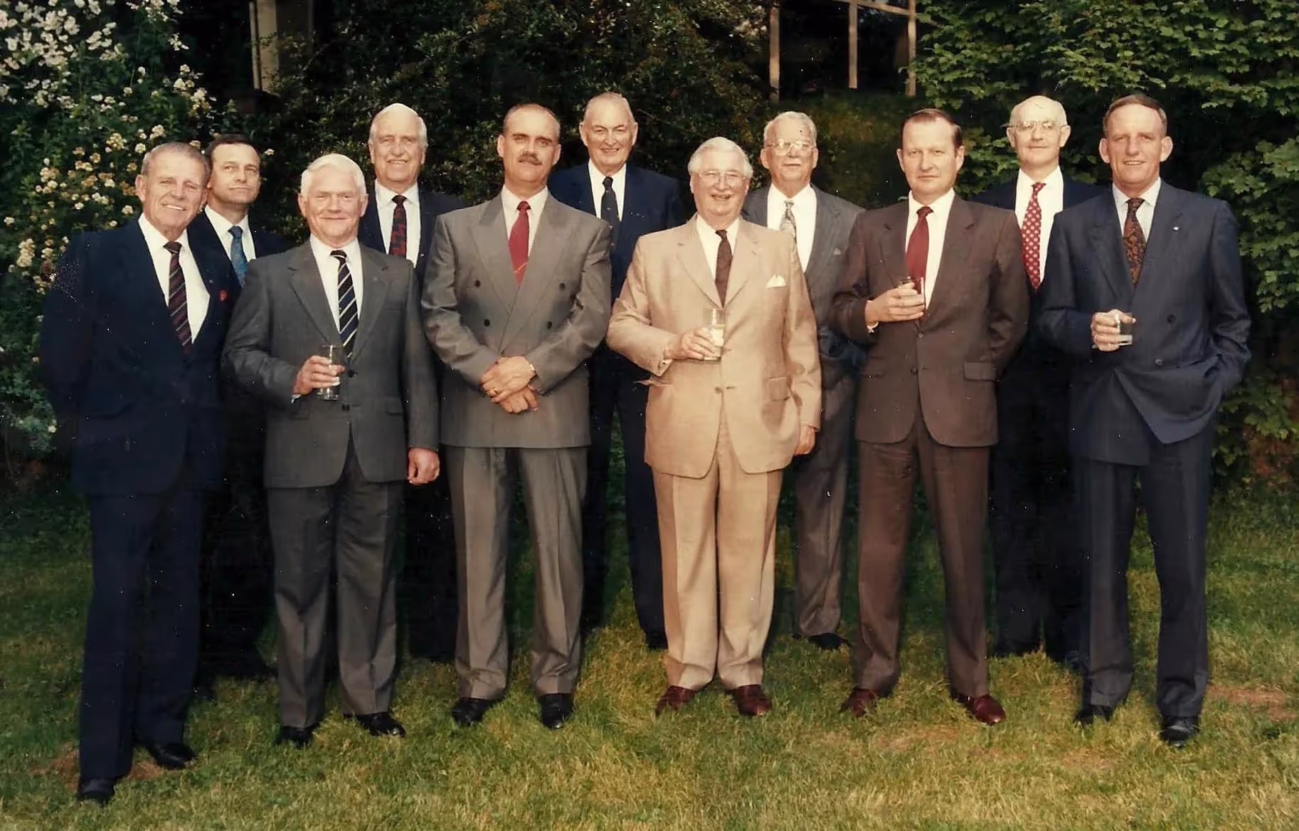 From left to right: Lieutenant-General J. Chouinard, CMM, CD, Commanded 4 Canadian Mechanized Battle Group as a Brigadier, 27 July 1971-13 July 1972. Major-General J.E.P. Lalonde, CD, Commanded 4 Canadian Mechanized Brigade Group as a Brigadier, 9 July 1986-15 September 1987. Lieutenant-General John Elwood Vance, CMM, CD, Commanded 4 Canadian Mechanized Brigade Group as a Brigadier, 19 July 1976-1 July 1978. Lieutenant-General William Alexander Beaumont Anderson, OBE, CD, Commanded 27 Canadian Infantry Brigade as a Brigadier, 15 Oct 1953-31 Oct 1955. Major-General R.G Meating, CMM, CD, MSM, Commanded 4 Canadian Mechanized Brigade as a Colonel, 13 June 1992-1 July 1993. Brigadier-General P.V.B. Grieve, CD, Commanded 4 Canadian Mechanized Battle Group (1973) and 4 Canadian Mechanized Brigade Group (1974), as a Brigadier, 13 July 1972-1 July 1974. Major-General W.C. Leonard, MBE, CD, Commanded 4 Canadian Mechanized Battle Group as a Brigadier, 3 July 1970-27 July 1971. Major-General A.J. Tedlie, DSO, CD, Commanded 4 Canadian Infantry Brigade Group as a Brigadier, 10 December 1964-15 September 1966. Major-General J.M. Robert Gaudreau, CMM, CD, Commanded 4 Canadian Mechanized Brigade Group as a Brigadier, 3 July 1989-13 April 1991. Major-General Tom F. de Faye, CMM, CD, SBStJ, Commanded 4 Canadian Mechanized Brigade Group as a Brigadier, 15 Sep 1987-13 July 1989. Major-General Clive J. Addy, OMM, OStJ, CD, Commanded 4 Canadian Mechanized Brigade Group as a Brigadier, 3 April 1991-13 June 1992.