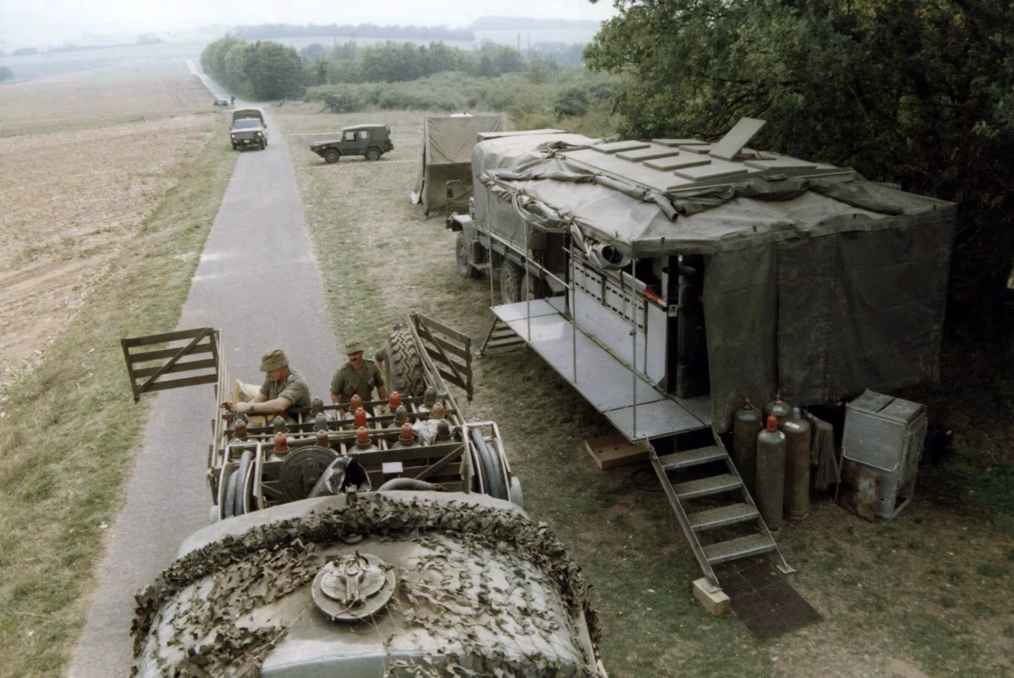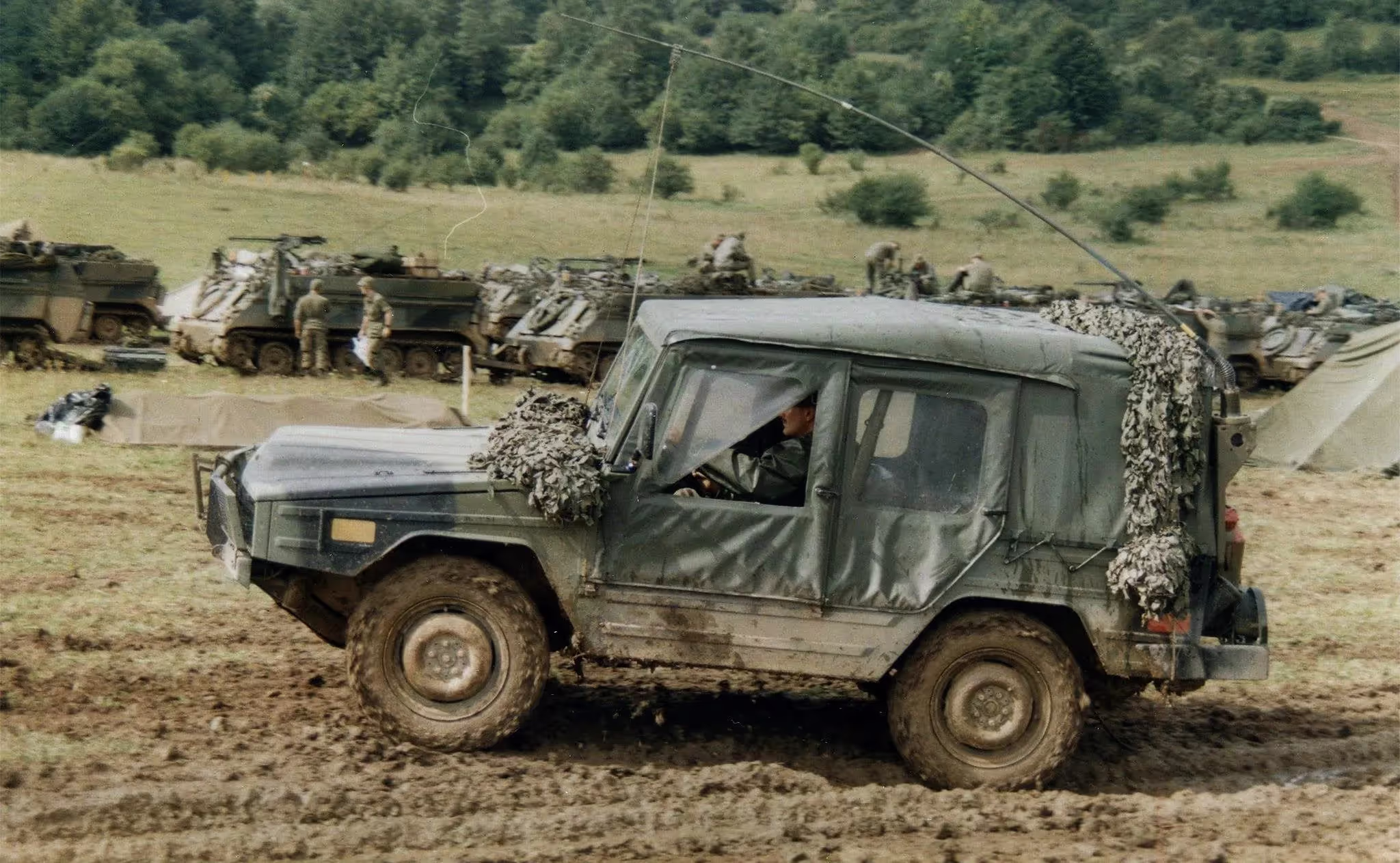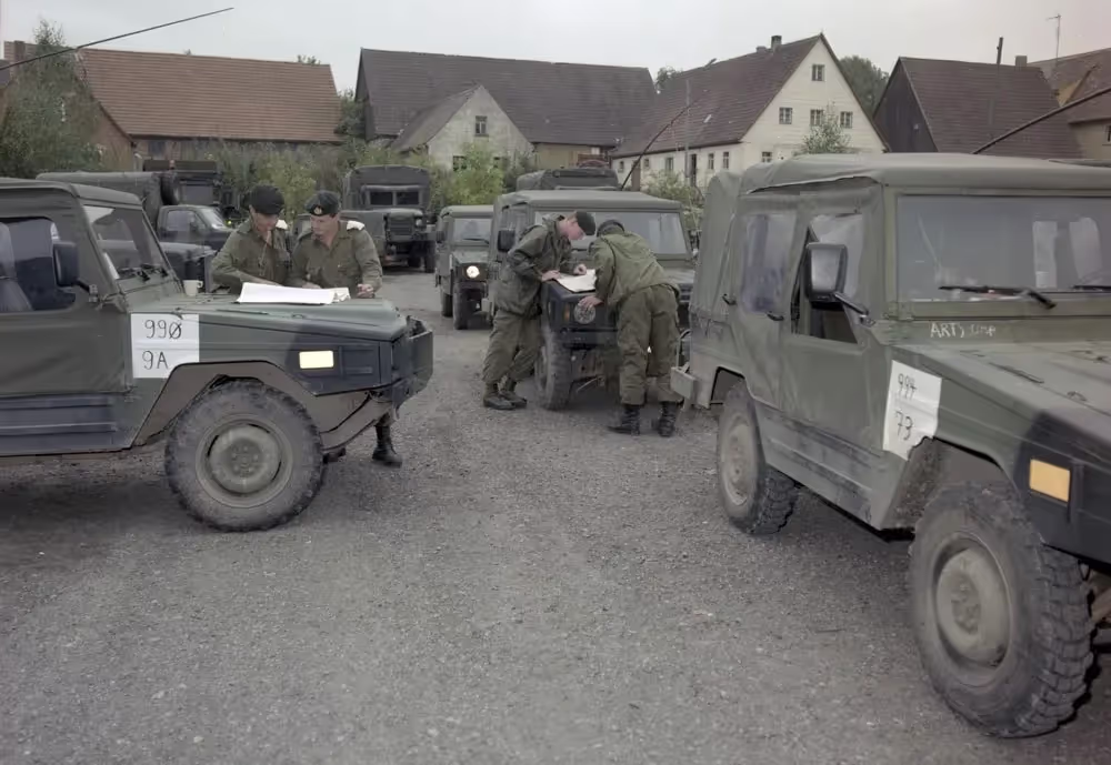 Germany, Fallex 88, 4 CMBG, 4 Service Battalion, Cpl. Beresford and Sgt. Mattews De-Cam their MLVW, September 1988.