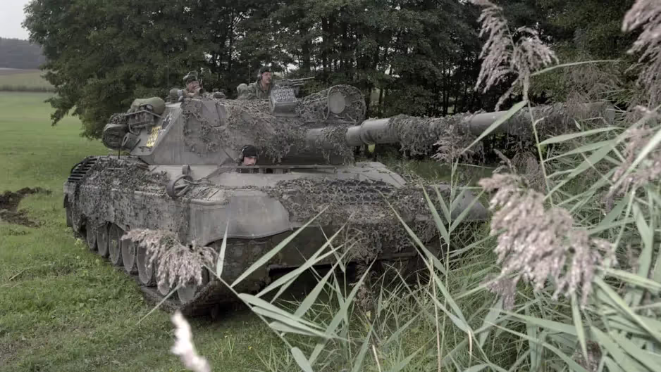 Fallex 88. Private Setchell, W.O. Wright and MCpl. Landry in Leopard tank ready for action, 1988.