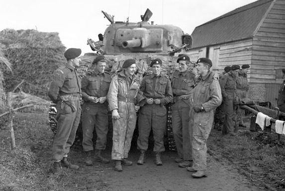 Governor General’s Foot Guards (GGFG) troopers with their Sherman Firefly tank, Bergen op Zoom, Netherlands, 6 November 1944.