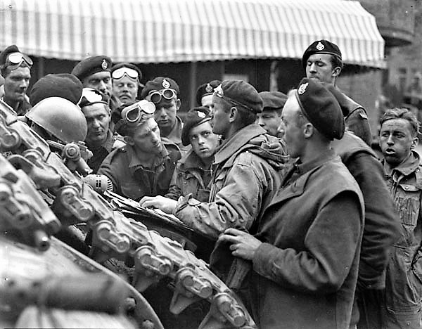 Sergeant H.K. Robertson briefing personnel of The Governor General’s Horse Guards, Arnhem, Netherlands, 15 April 1945.