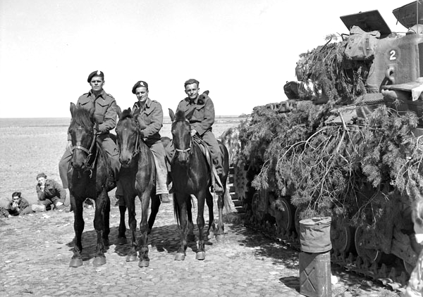 Troopers of Lord Strathcona’s Horse (Royal Canadians) on horseback, Harderwijk, Netherlands, 19 April 1945.