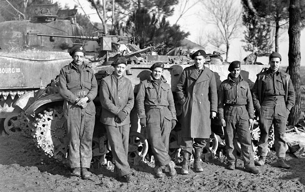 Personnel of First Troop, “C” Squadron, Governor General’s Horse Guards, with their Stuart recce tank, Cervia, Italy, 19 January 1945.
