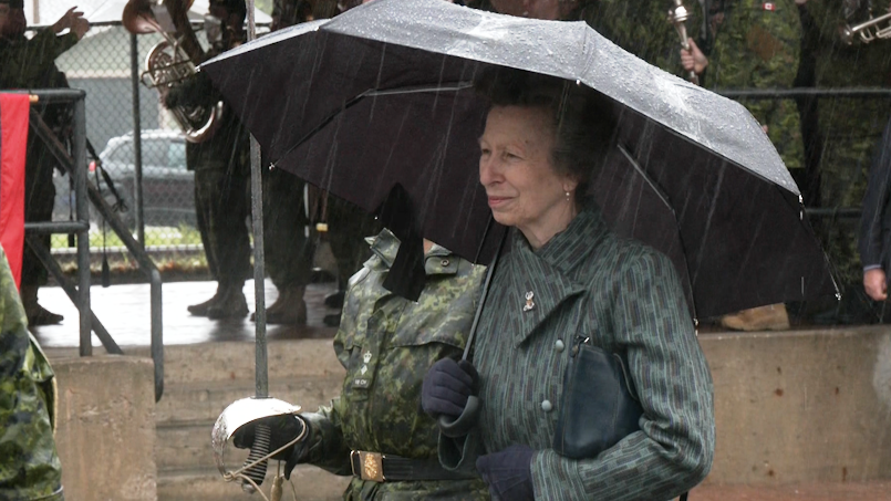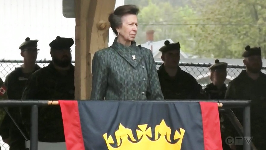 Princess Anne inspects her troops as colonel-in-chief of the 8th Canadian Hussars on 21 May 2023.