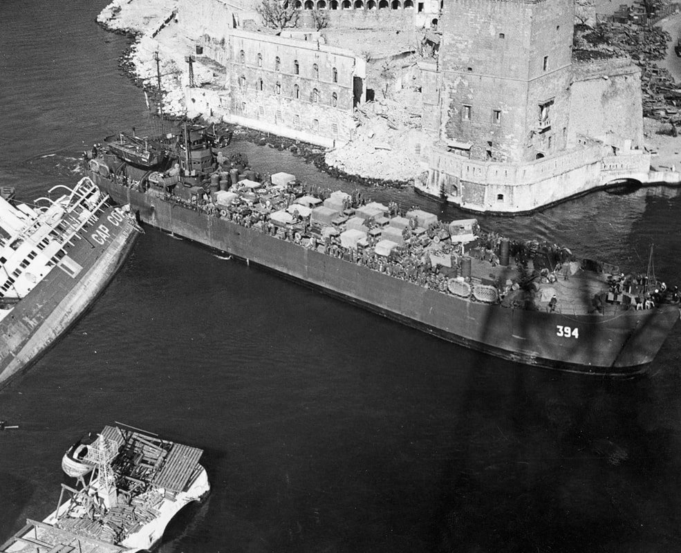 LST 173 carrying a cargo of vehicles and supplies entering a harbour. Operation Goldflake was the administrative move of I Canadian Corps (in essence, all Canadian combatant units) and the British 5th Infantry Division from Italy to Northwestern Europe during the Second World War.