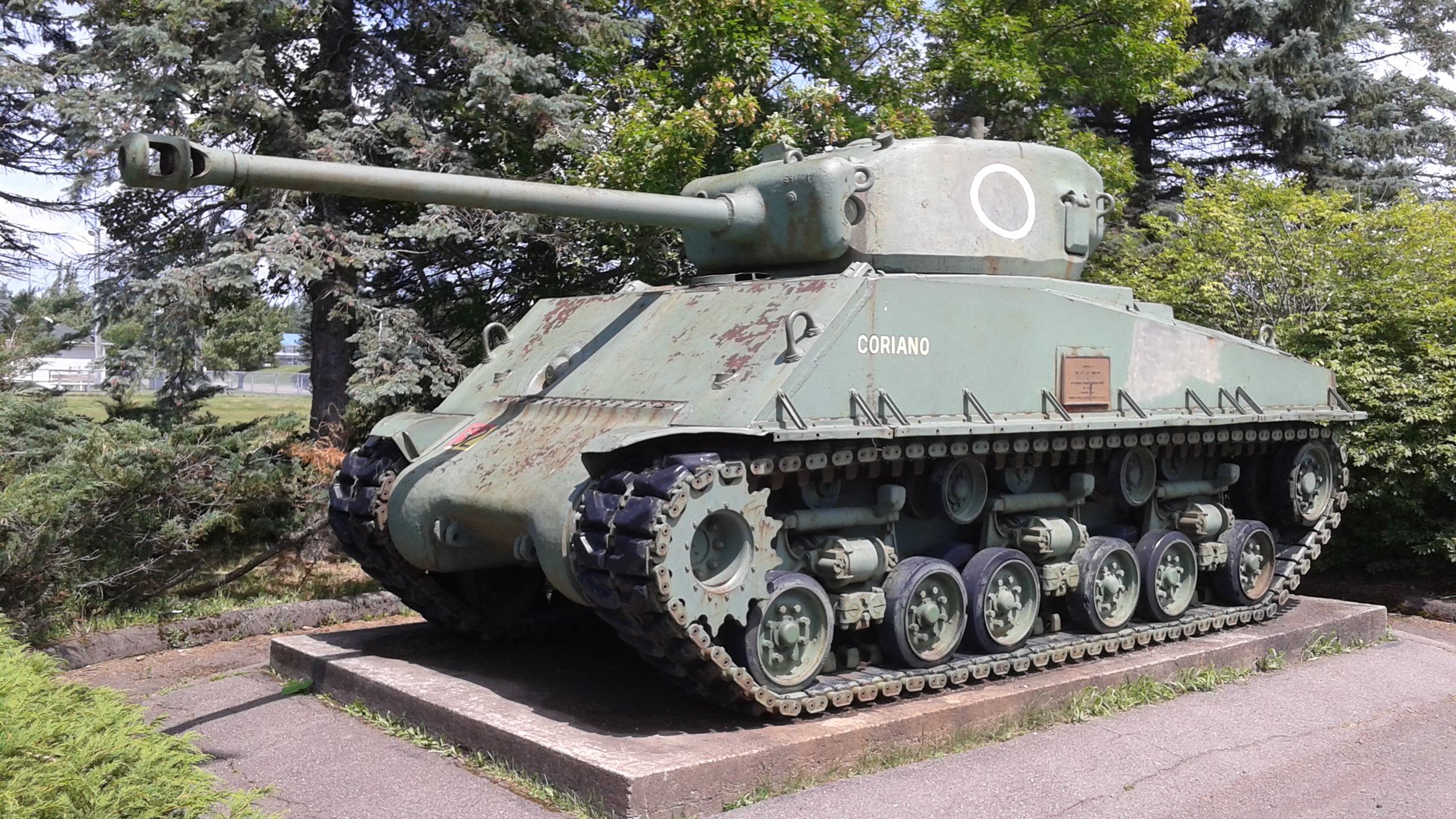 M4A2 (76) W HVSS Sherman, previously outside the Main Gate, now on the memorial lane past the front gate on the south side, 5 Canadian Division Support Base, Gagetown, New Brunswick.