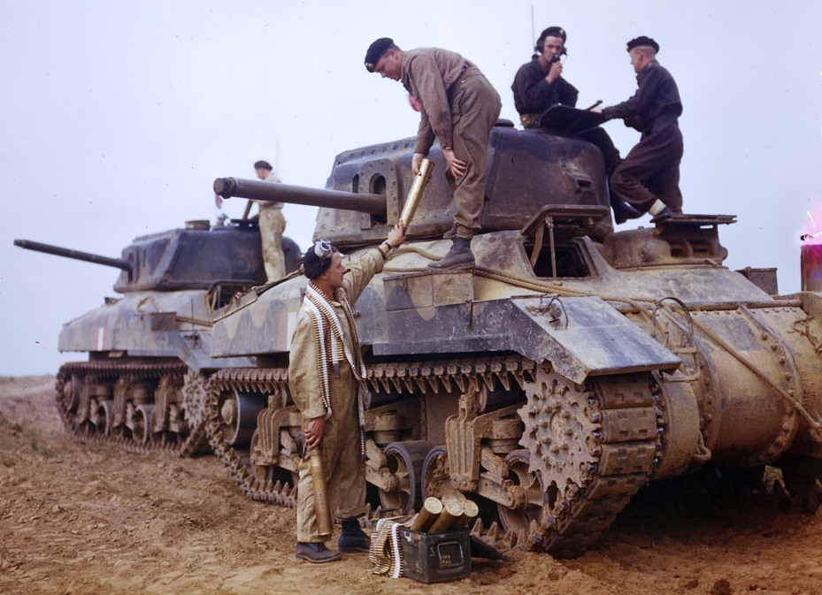 Ram II tanks in service with the 27th Armoured Regiment (the Sherbrooke Fusiliers Regiment) of the 2nd Armoured Brigade and the North Nova Scotia Highlanders of the 9th Infantry Brigade on manoeuvres, conditioning for Second Front Operations. (Library and Archives Canada Photo, MIKAN No.3255723)