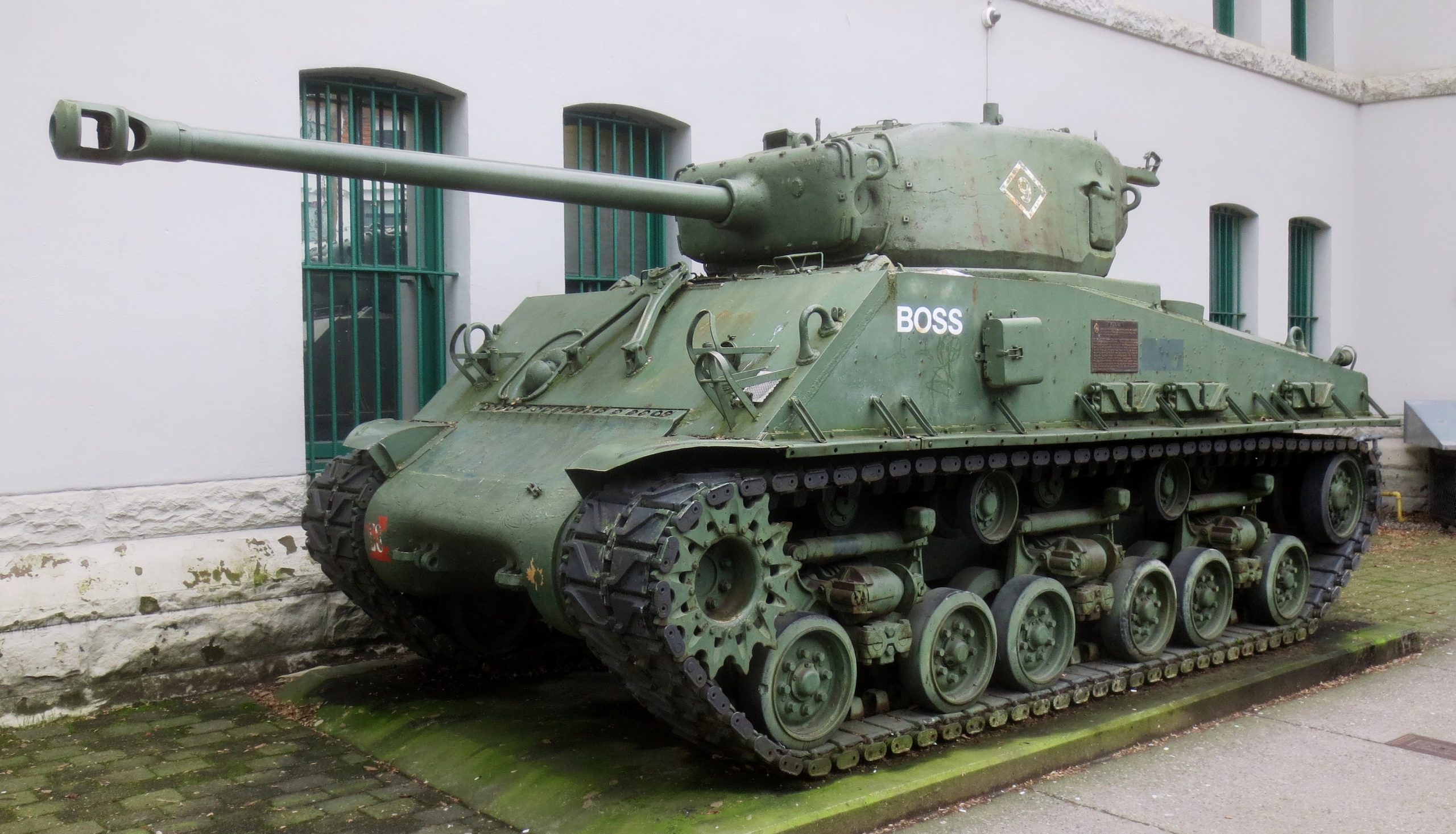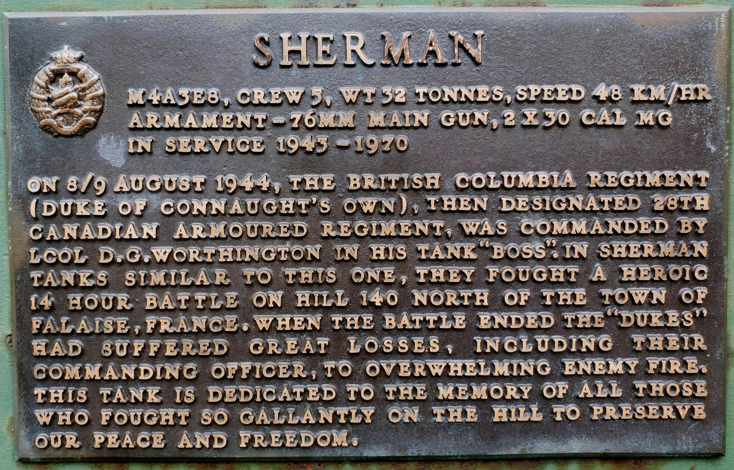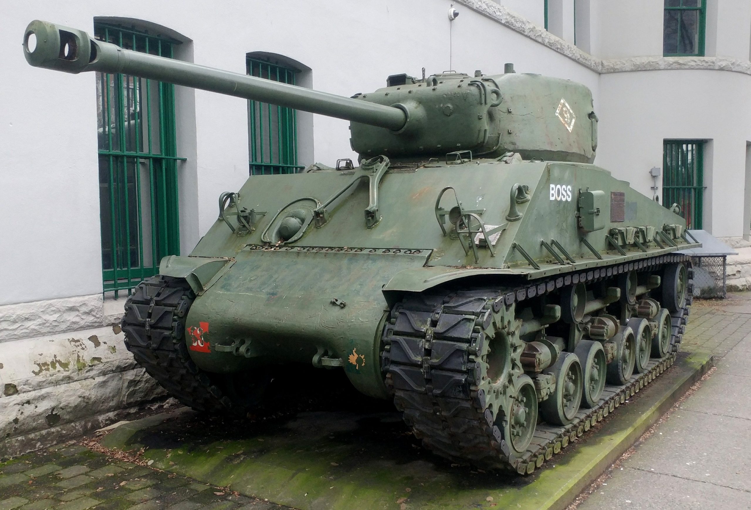 Canadian Medium TankM4A2(76)W HVSS Sherman “Easy 8”, DND No. 69192, built by Fisher, Reg. No.30129671, No. 53, “Boss”, Beatty Street Drill Hall, 620 Beatty Street.