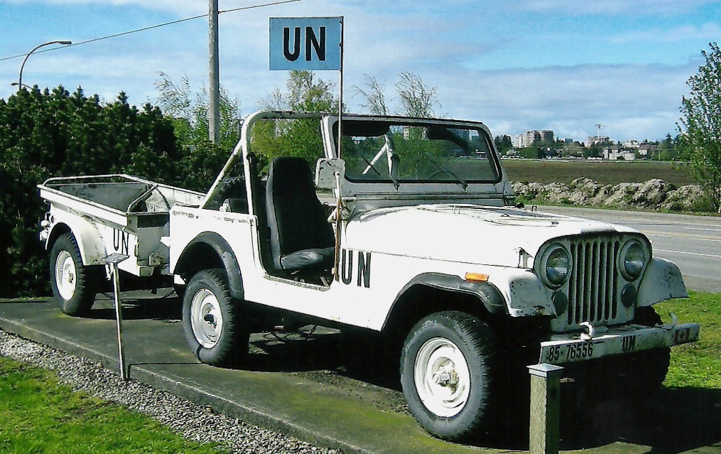 CJ-7 2¼ -ton 4 X 4 Jeep with ¼-ton trailer, painted in white with UN markings. 12 (Vancouver) Service Battalion Armoury.
