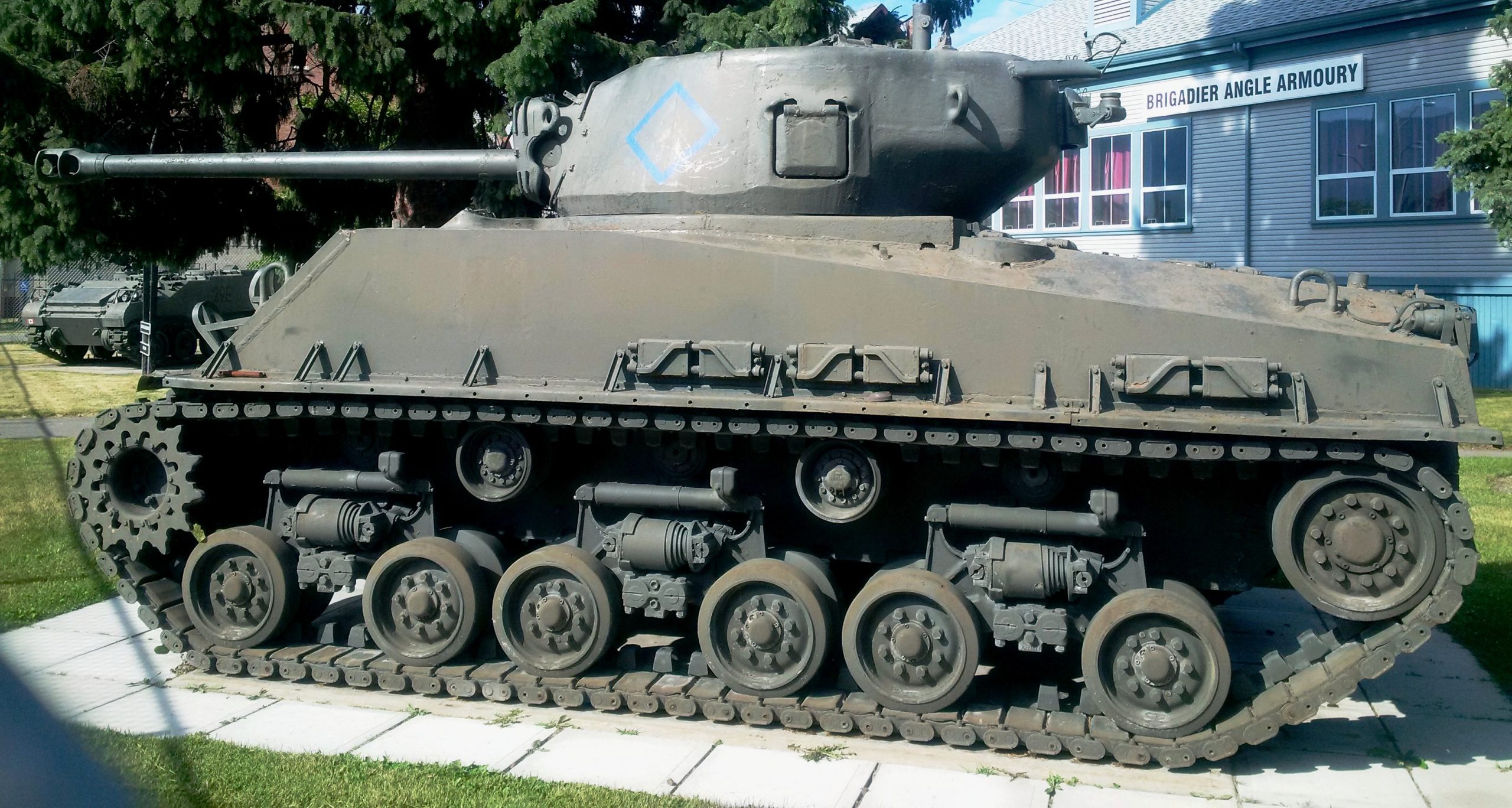 Canadian Medium Tank M4A2(76)W HVSS Sherman “Easy 8”, DND No. 69132, built by Fisher, Reg. No. 30129611, No. 53, Brigadier Angle Armoury, 720 Lawrence Ave.