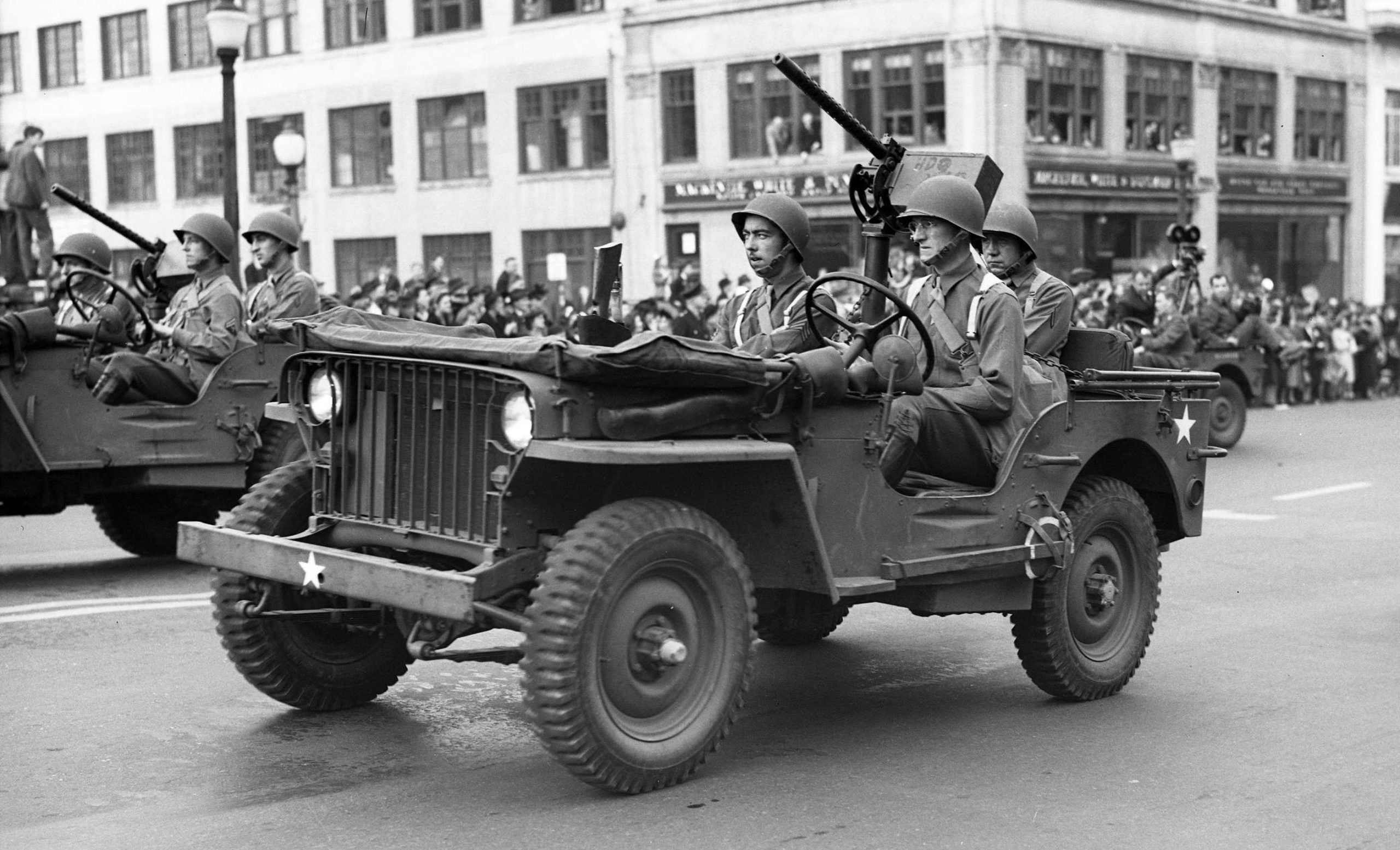 US Army Willys Jeep, on parade in Vancouver in 1943. Widely used by Canadian troops during the Second World War, many have been preserved in Canada.