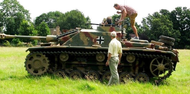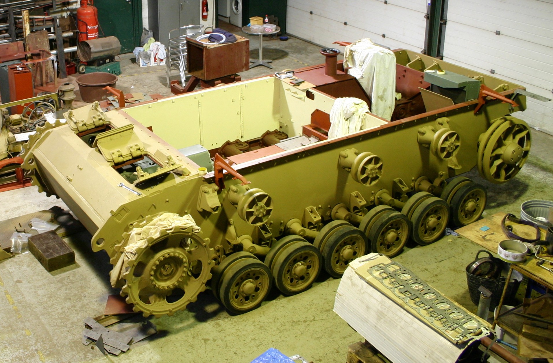 This StuG III was one of two located at CFB Shilo up through the 1970s.  It was loaned to a museum in Calgary, but later sold to an American collector who restored it to running condition using an engine from a firetruck.  It was recently shipped to England, where it is shown here undergoing restoration for a Museum in Belgium.