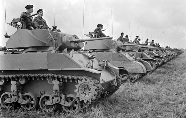 M3A3 Stuart V light tanks of Lord Strathcona’s Horse (Royal Canadians) taking part in an inspection and marchpast of the 5th Canadian Armoured Division, Eelde, Netherlands, 23 May 1945.