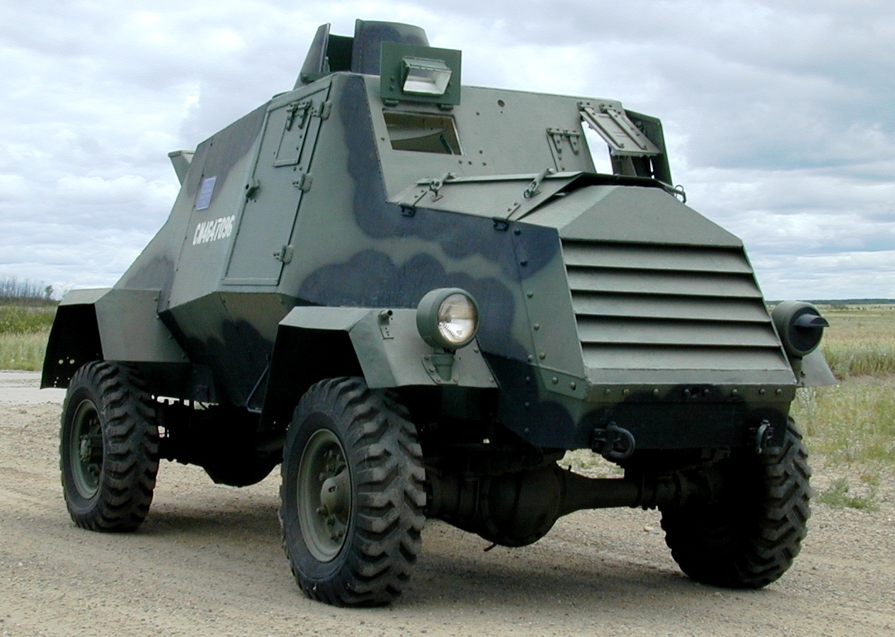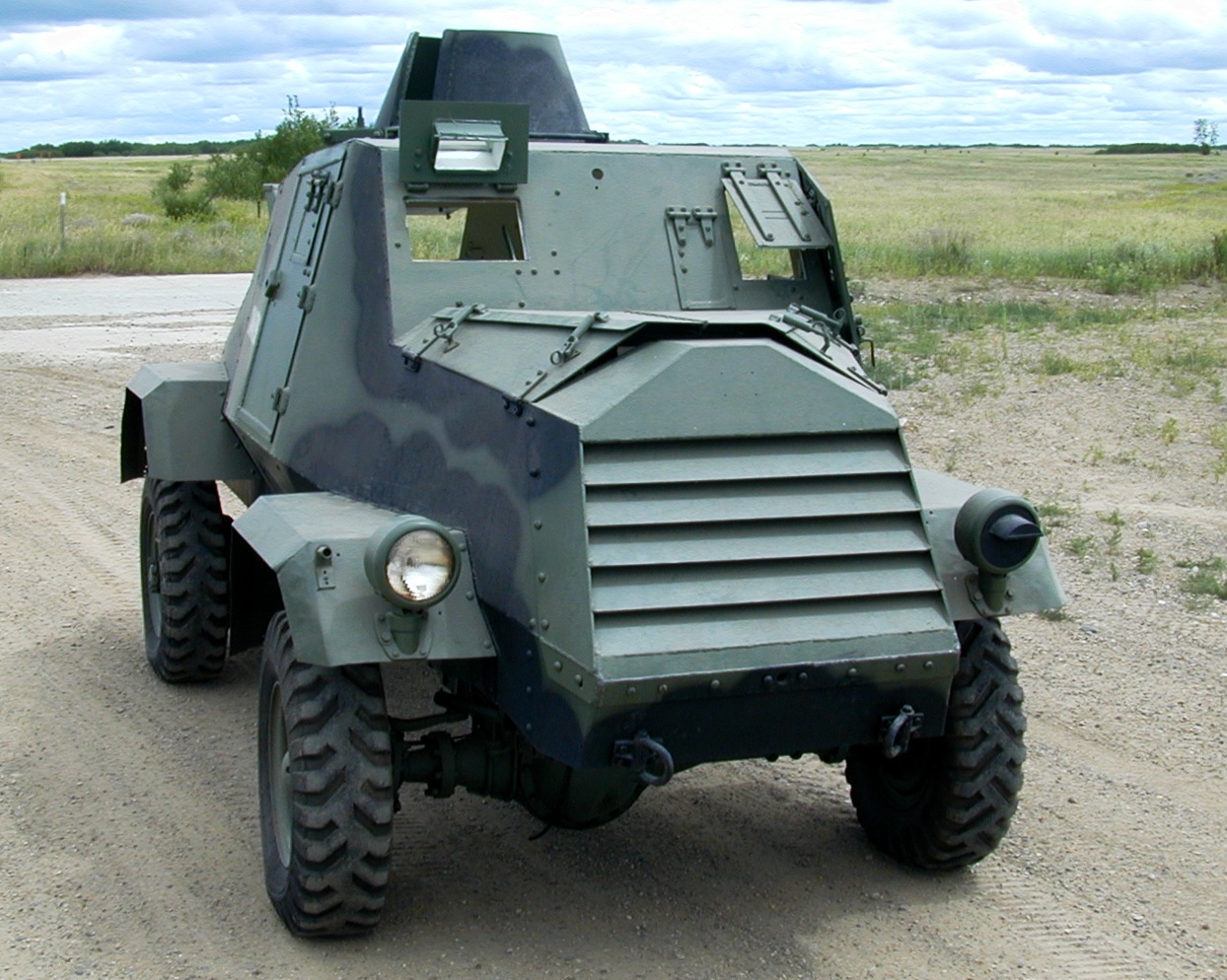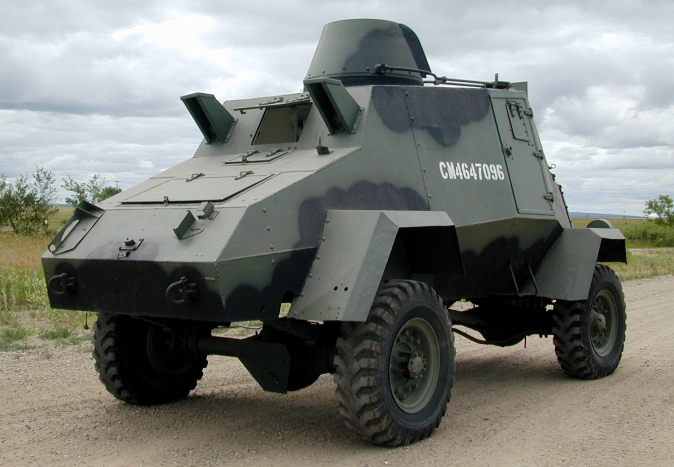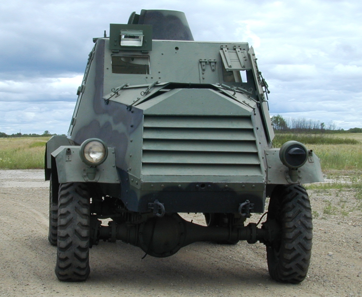 The General Motors of Canada (GMC) C15TA Armoured Truck was based on the GMC Otter Light Armoured Reconnaissance Car which married the Chevrolet C15A Canadian Military Pattern (CMP) four-wheel-drive chassis, the GM 270-cubic-inch engine, and an armoured body built by the Hamilton bBidge Company.  From the front the vehicle resembled the Otter, while the rear was similar to the White Scout Car.  Its armour was only shoulder high, with weather protection provided by a canvas cover.  It came with run-flat tires and could hold an eight-man crew and their equipment.  The cab seating had two men facing outwards on each side, two faced the rear and two sat in the driver’s compartment.  With some modification it could serve as an eight-man APC or as an armoured ambulance or load carrier.  From late 1943 to June 1945, GMC Oshawa built a total 3,961 C15TAs for British and Canadian contracts.  A number of these vehicles remained in military service in Canada after the war until July 1953.