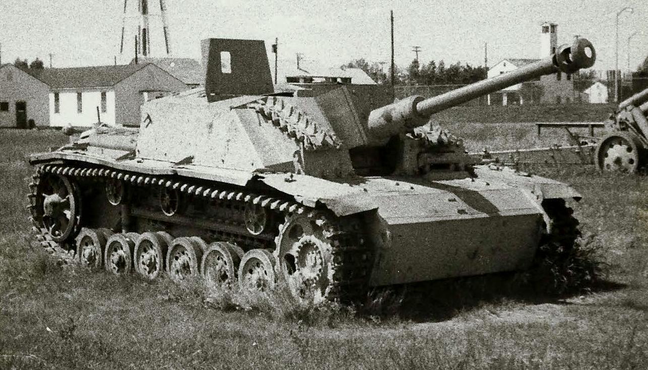 Sturmgeschütz III, CFB Shilo, Manitoba, 1973. According to documentation compiled May -Oct 1945 and filed by Captain Farley Mowat with the Historical Section in Ottawa, registered in the Archives 10 Sep 1946, this vehicle is identified as Item 4 on Page 12 as a 7.5-cm StuG 40 (L-43) Assault Gun mounted on a Mk. III tank chassis.  This “specimen had been assigned to the defence of Amsterdam but did not come into action there.  It was recovered from the Germans after their surrender, by the Seaforth Highlanders of Canada.”  Specimen Data: 1. Identity: Fahrgestall (Engine) No. 96105, Gun No. R540.  This vehicle was in running order when shipped to Canada.
