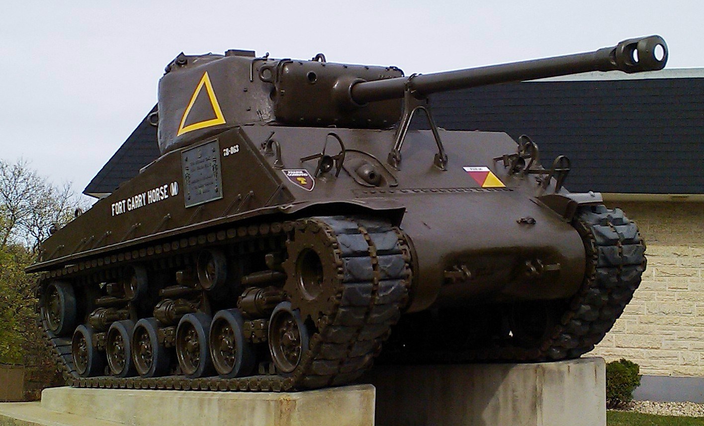 Canadian Medium Tank M4A2(76)W HVSS Sherman, nicnamed “Easy 8”, DND No. 65019, built by Fisher, Reg. No. 3022998. Moved to Minnedosa in 1970 from CFB Shilo, 12th Manitoba Dragoons.
