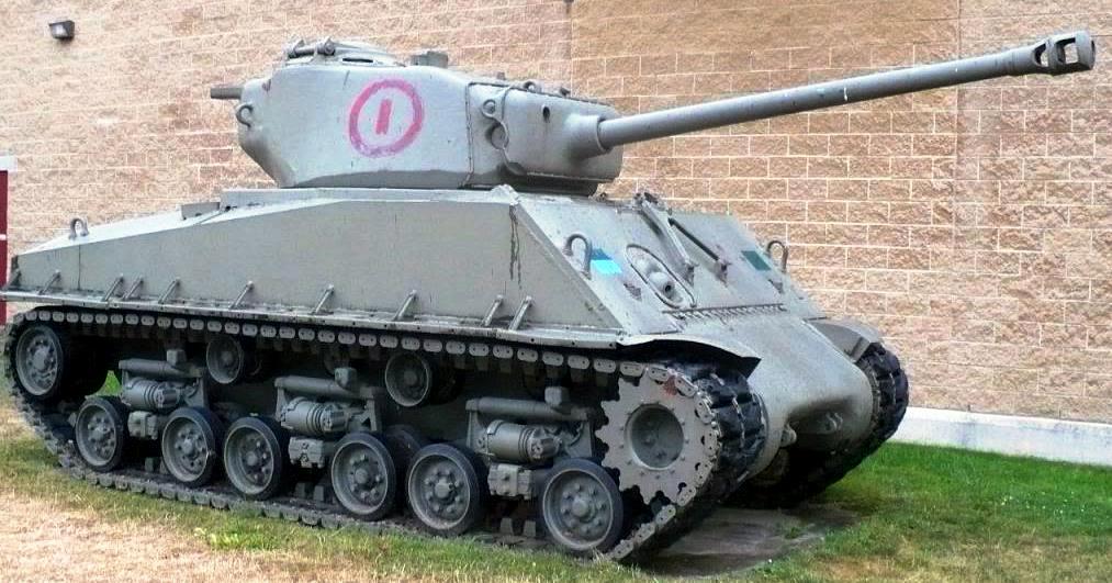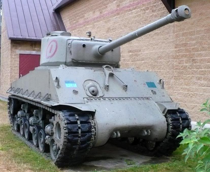 Canadian Medium Tank M4A2(76)W HVSS Sherman “Easy 8”, DND No. 65017, built by Fisher, Reg. No.30122996, Huron County Museum, 110 North St. This tank is painted to represent the command tank of Major David Currie V.C., South Alberta Regiment.