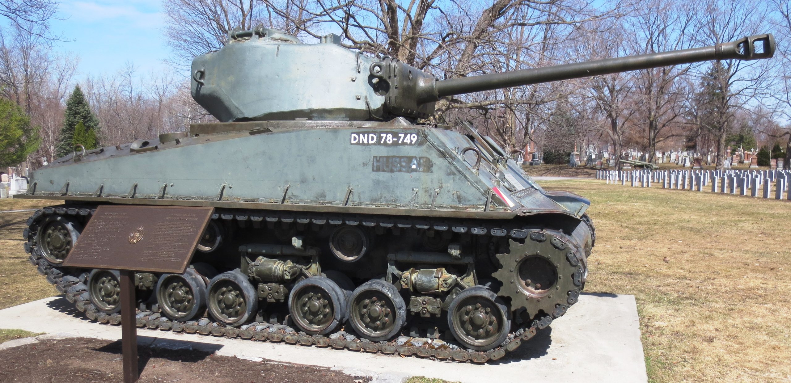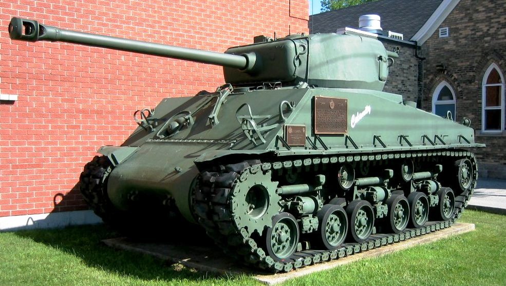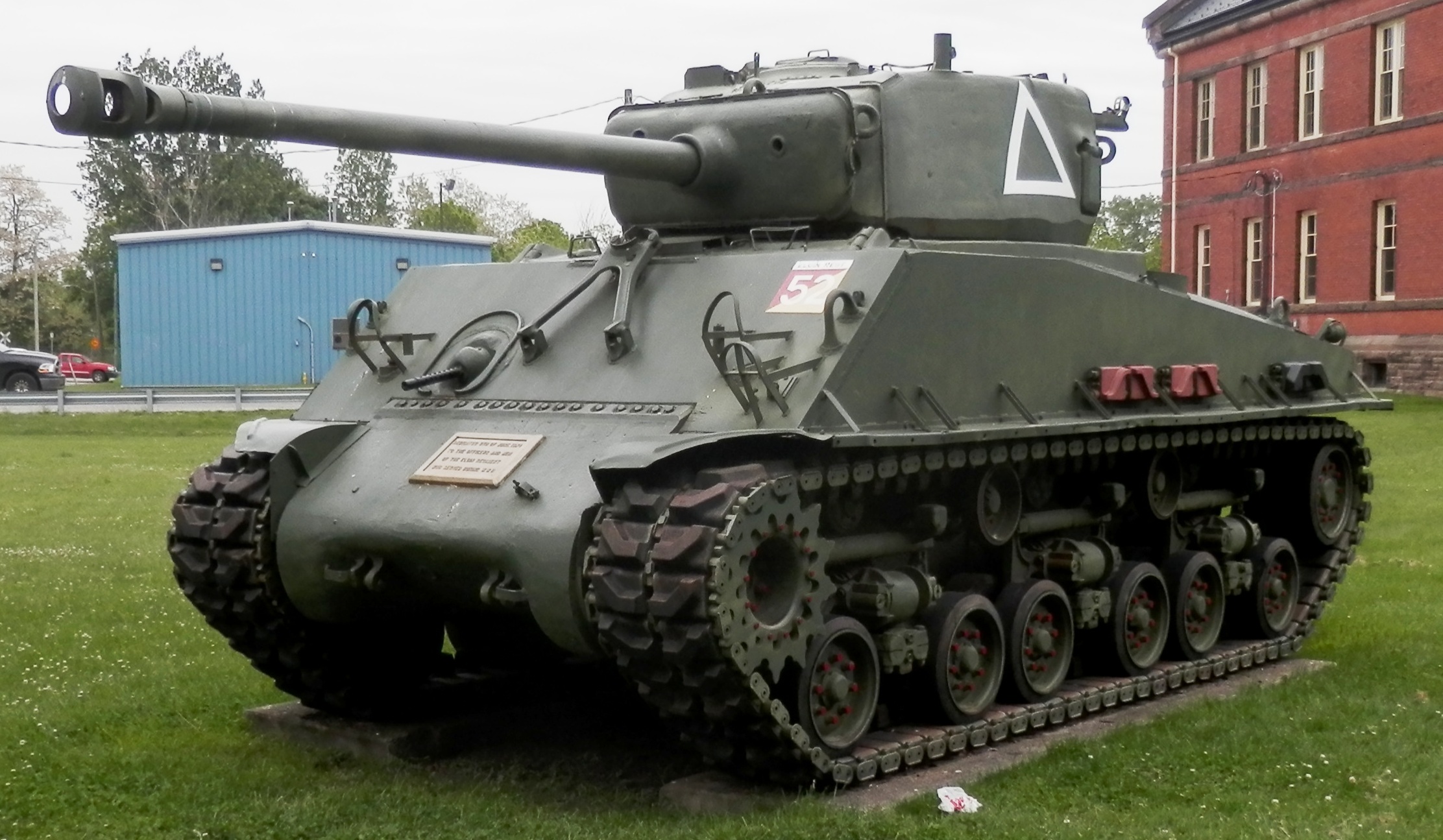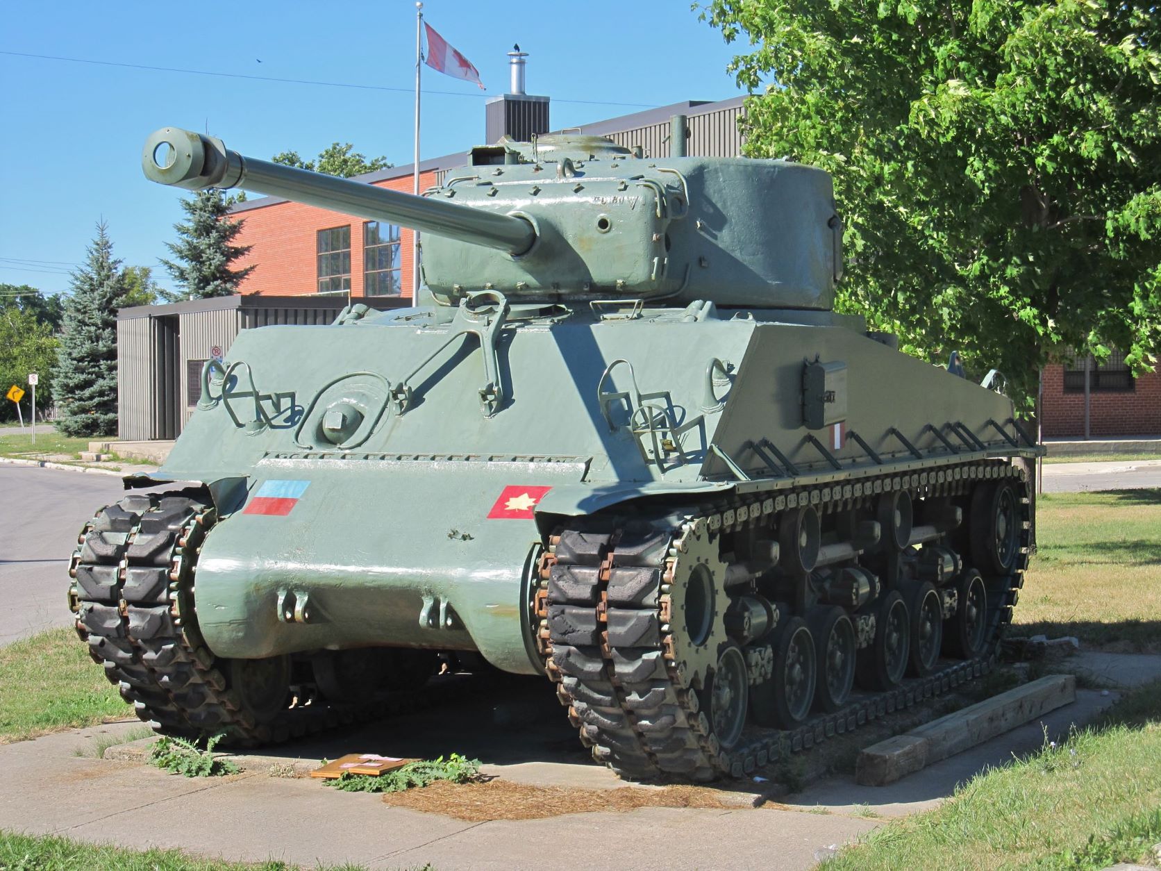 Canadian Medium Tank M4A2(76)W HVSS Sherman “Easy 8”, DND No. 65076, built by Fisher, Reg. No.30123055, Royal Canadian Legion Branch No. 76, 1553 Weller Street.
