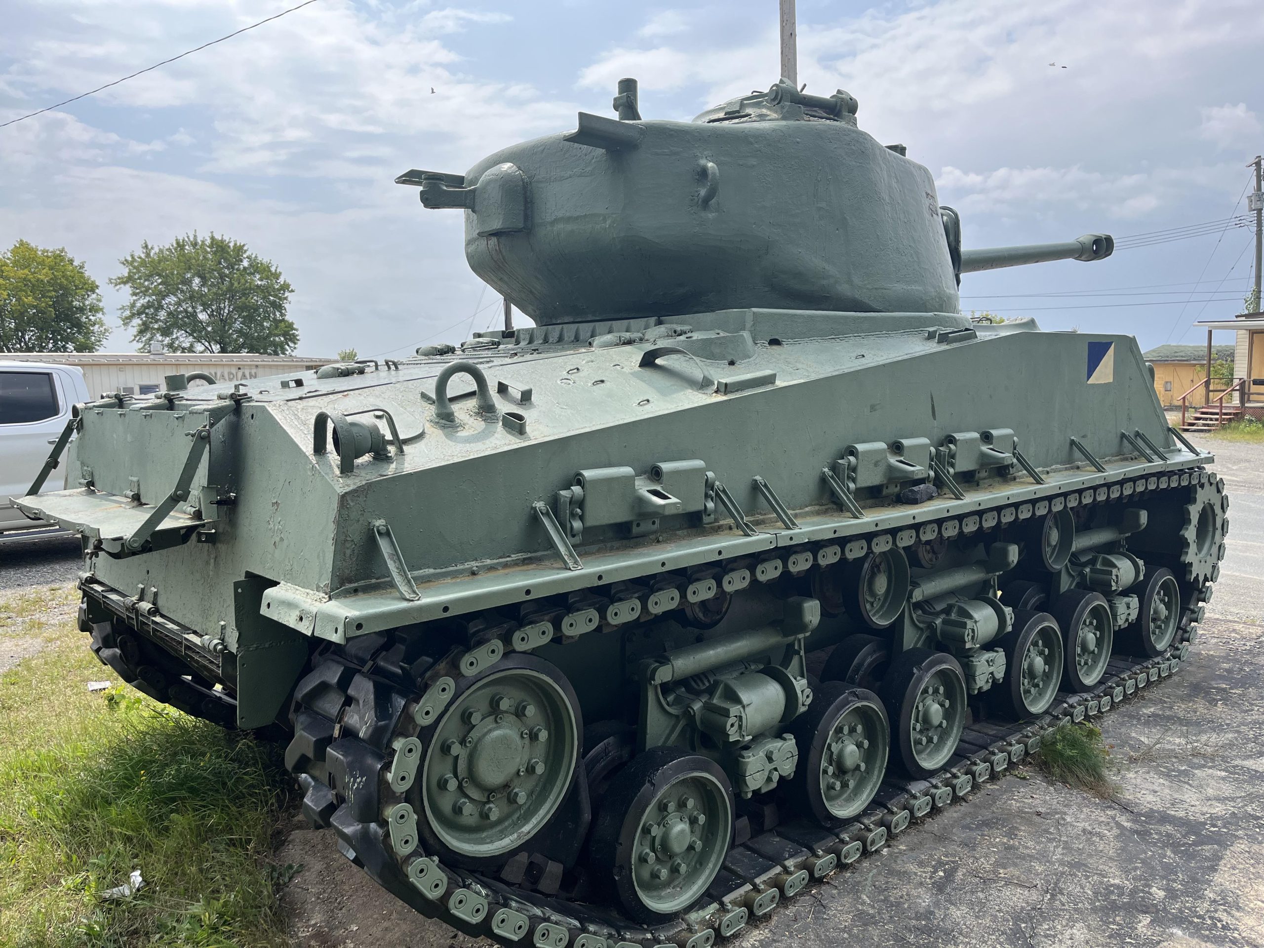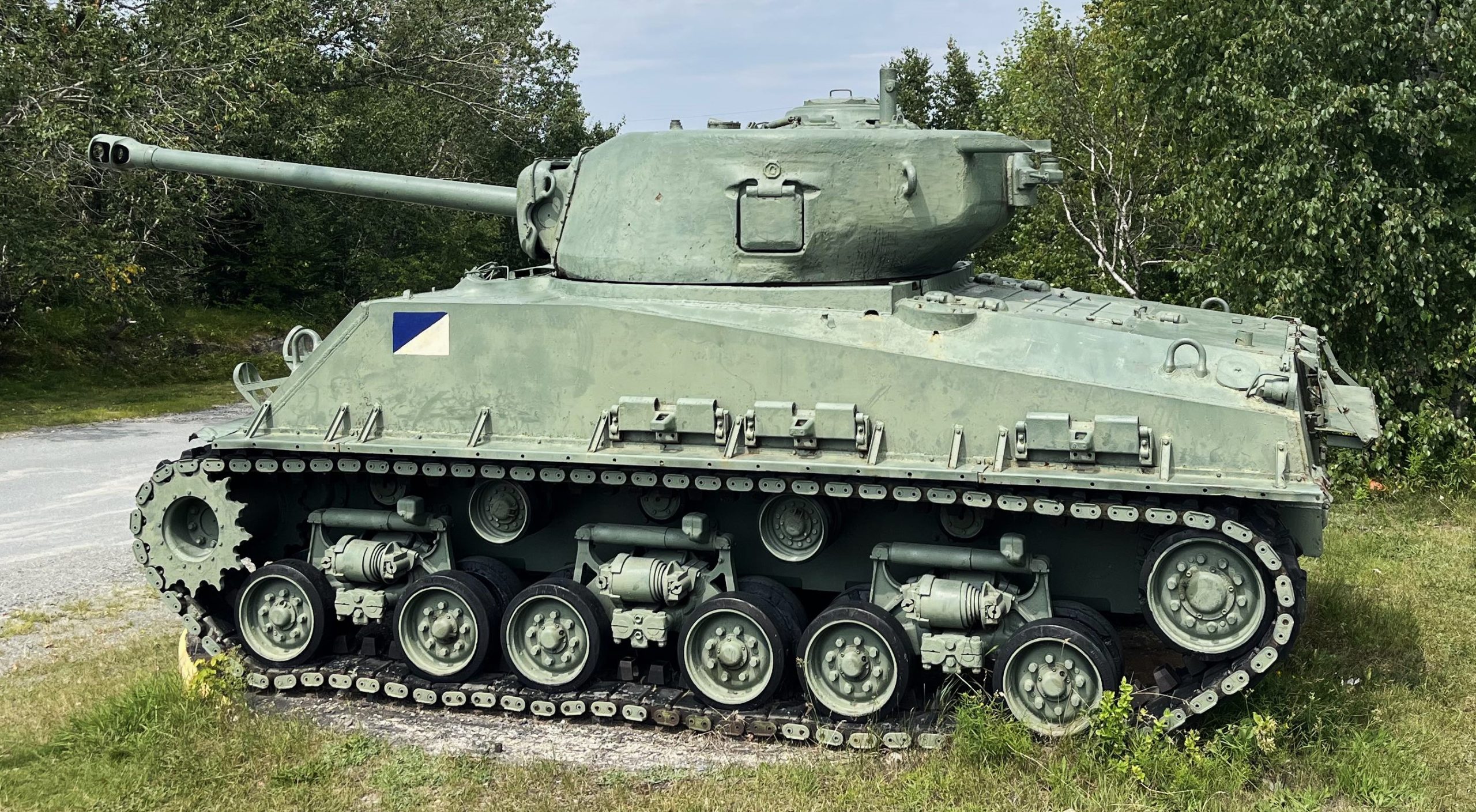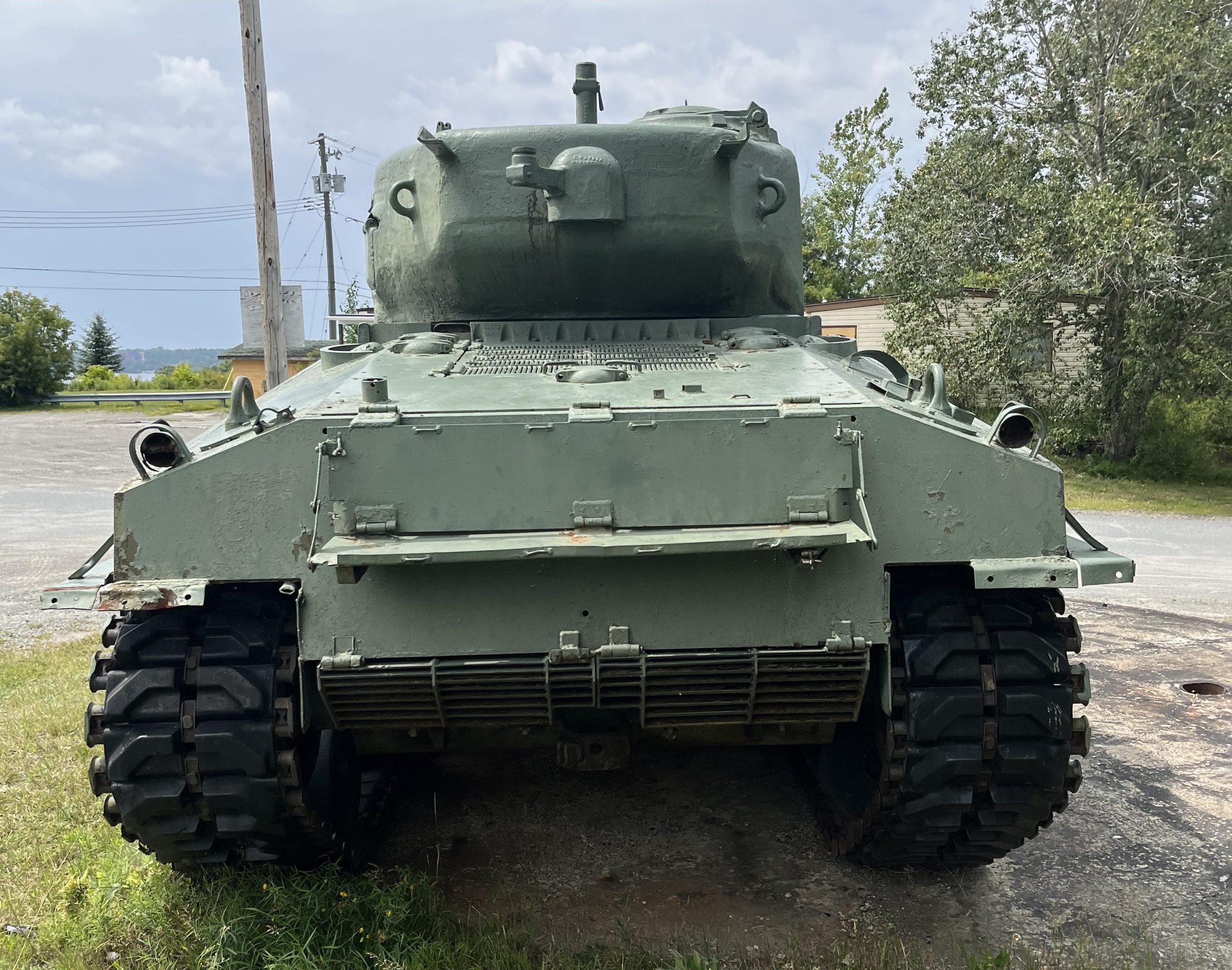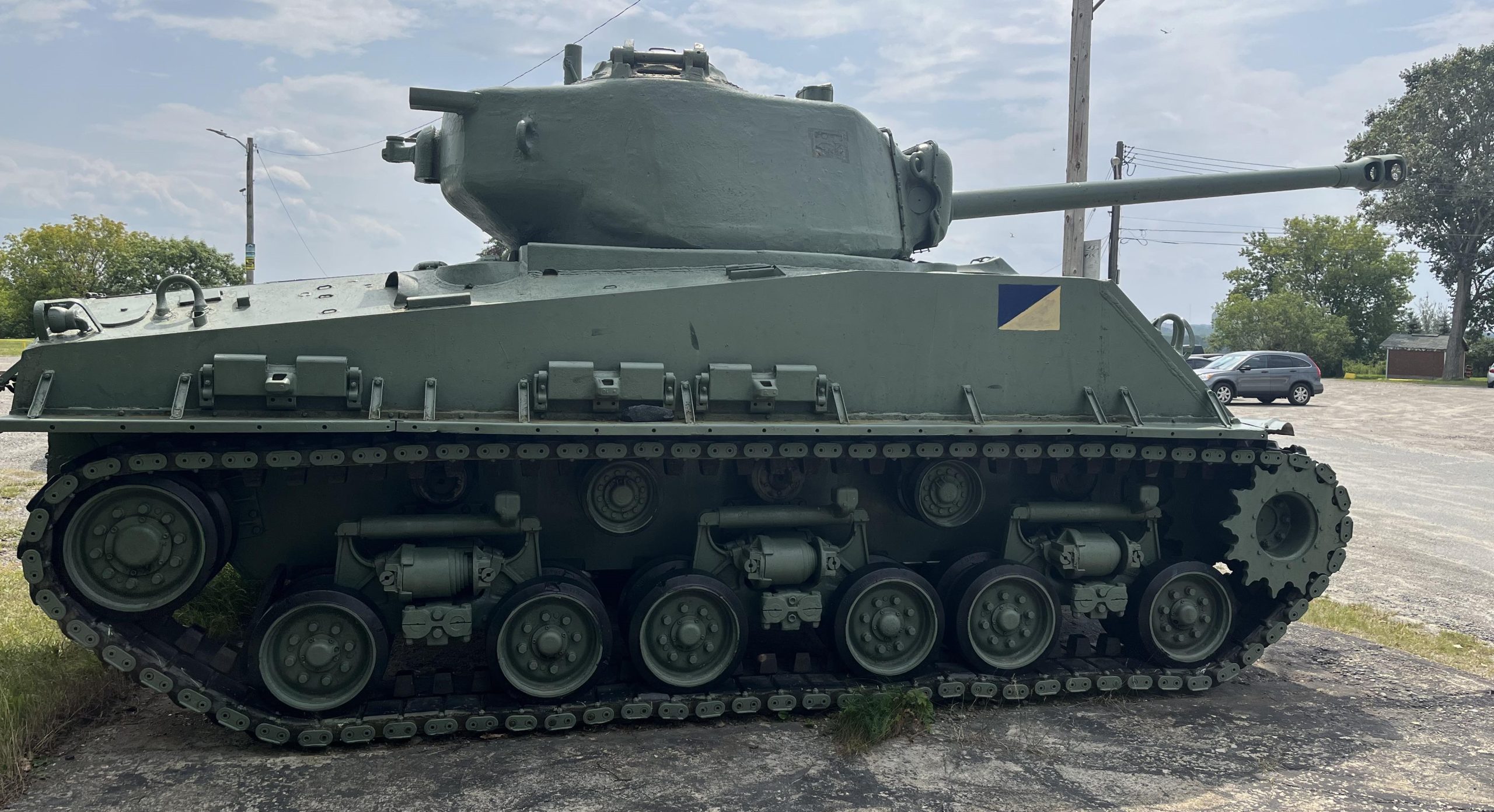 Canadian Medium Tank M4A2(76)W HVSS Sherman “Easy 8”, DND No. 65032, built by Fisher, Reg. No.30123011, and a few sections of Engineer bridging, St. Thomas Armoury, WilsonAve & Chester St.