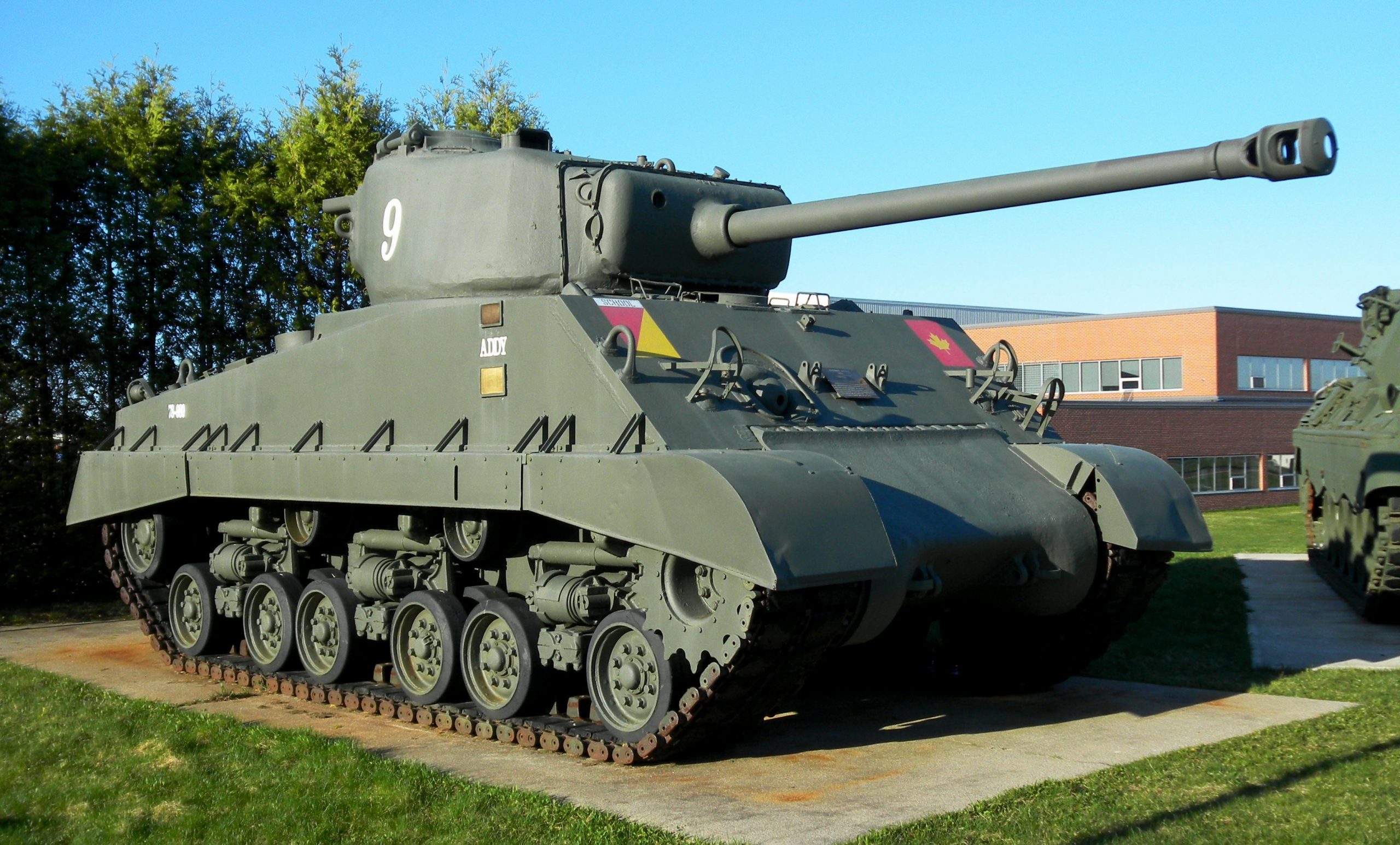 Canadian Medium TankM4A2(76)W HVSS Sherman “Easy 8”, DND No. 65056, (Serial No. 78-980),1080E, 76-mm Gun, “Addy”, West of Bldg J-7. Previously “Rousseau”, and “Natynchuk“.