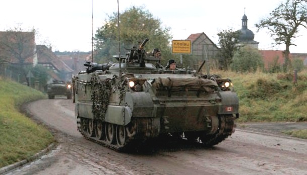 Ferret Scout Car on exercise in Germany, 8th Canadian Hussars.  (Library and Archives Canada Photo, MIKAN No. 4234829)