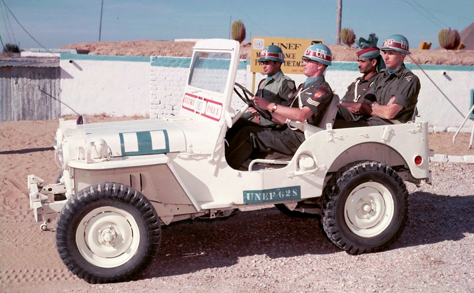 Canadian Provost Corps mounted in a Willys Jeep on UN duty in Egypt.