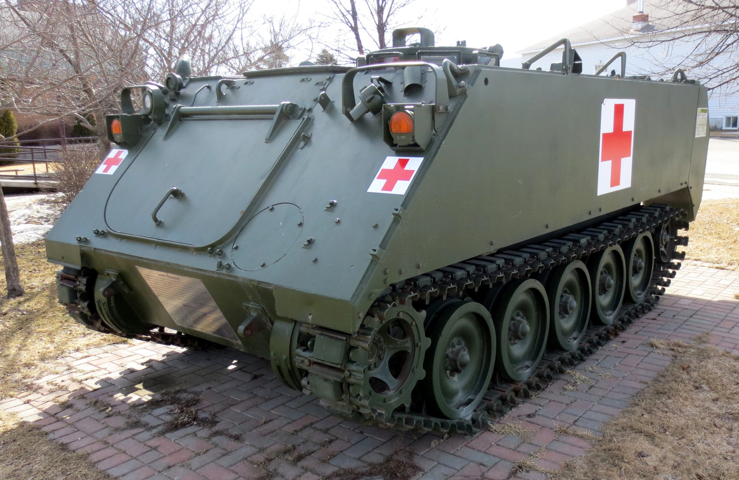 M113 APC, Ambulance, beside the war memorial in front of the town library.