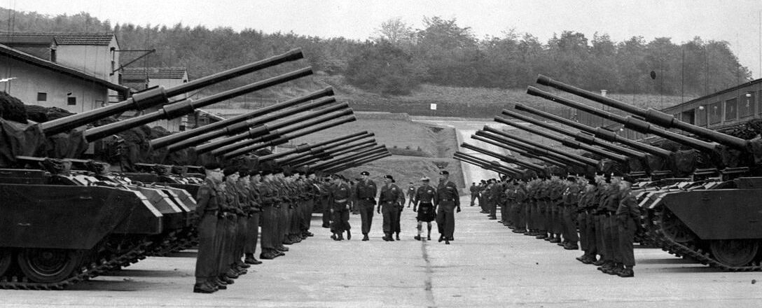 8th Canadian Hussars, Centurions on parade at Fort Beausejour, just west of Iserlohn in West-Central Germany, ca 1959-1962.