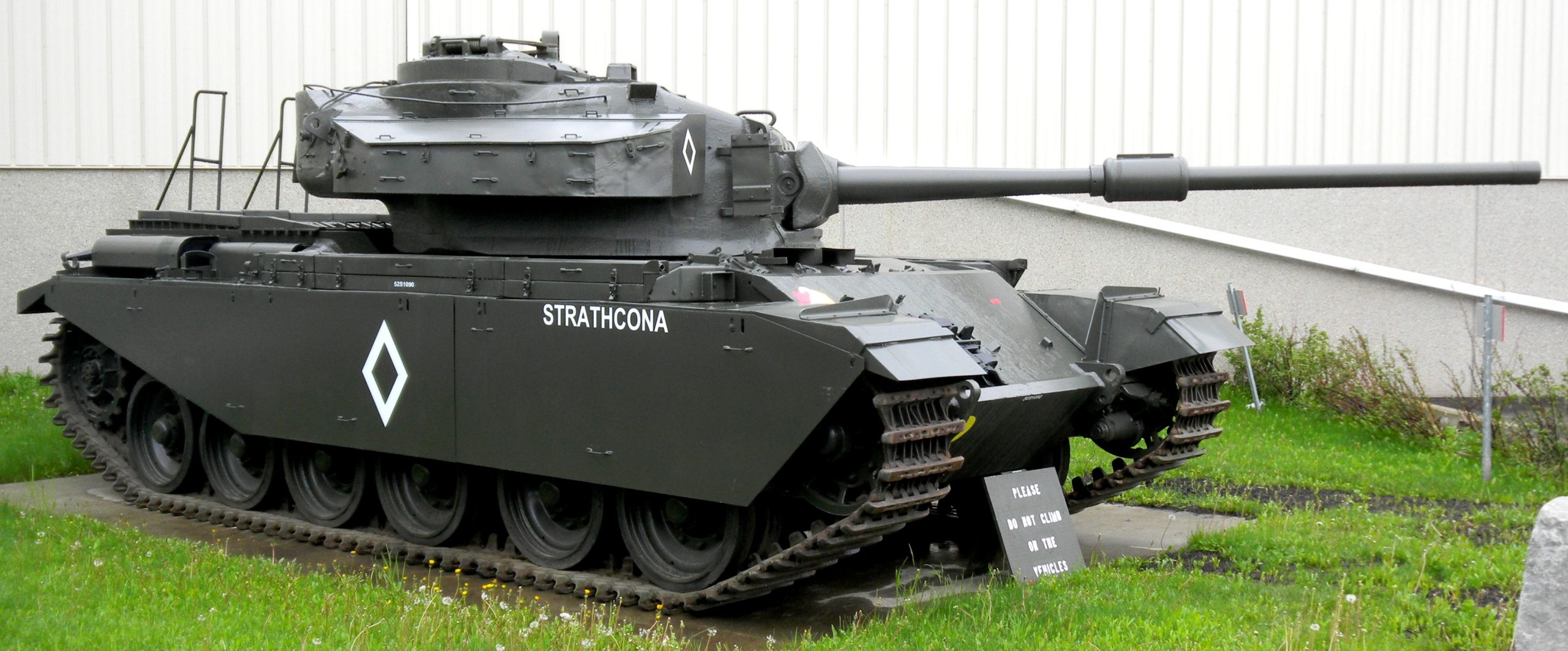 Centurion Main Battle Tank Mk 5/2 with L7 105-mm main gun, “Strathcona”, Harvey Bldg, Lord Strathcona’s Horse (Royal Canadians), CFB Edmonton, Alberta.