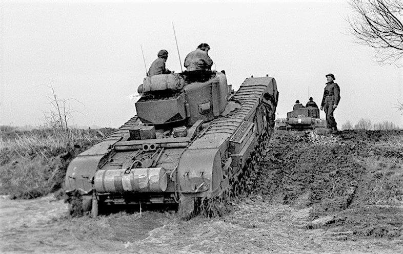 Churchill Infantry Tank Mk 1, 12th Canadian Army Tank Regiment (Three Rivers) taking part in Exercise Spartan in the UK, 8-10 March 1943.